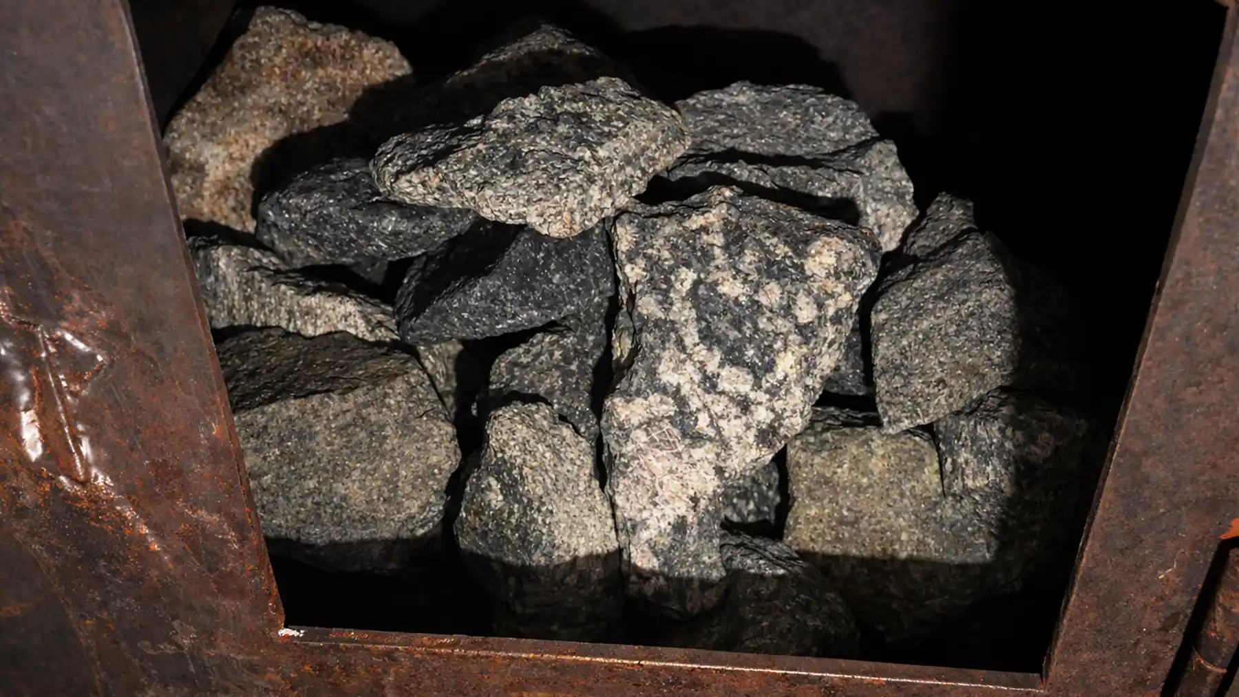 - В финской сауне влажность держится на уровне 5–15 %, а температура доходит до 80–100 °C, что помогает телу быстро прогреться и вывести лишнюю влагу. В таких условиях закладка прогревается до более высоких значений, чем в русской парной, и работает в режиме сухого жара. Поэтому важны прочность и жаростойкость: материал должен выдерживать постоянное расширение и сжатие. Здесь подойдут перидотит, габбро-диабаз, базальт.