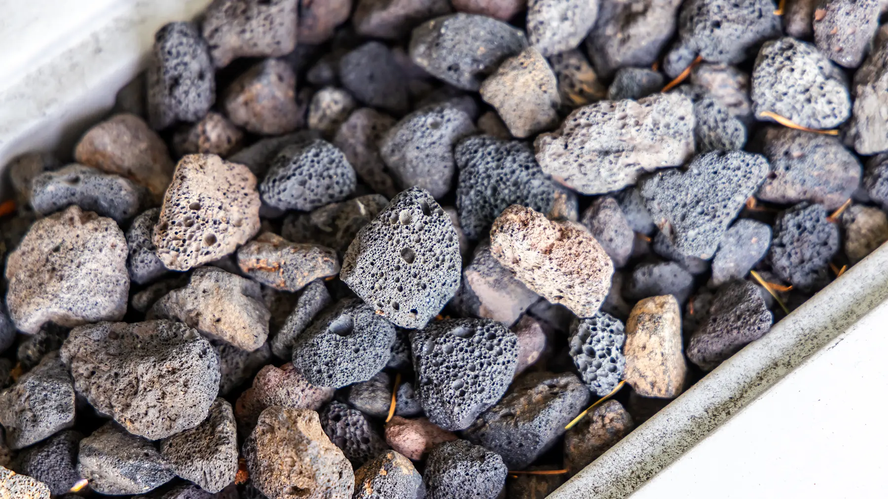 - Верхний слой ― 20 % объема. Это мелкие камни 3–5 см. У них самая большая суммарная площадь поверхности. При поливе вода равномерно распределяется и мгновенно испаряется, создавая обильный и легкий пар. Мелкие экземпляры также закрывают пустоты между крупными, делая закладку более плотной.