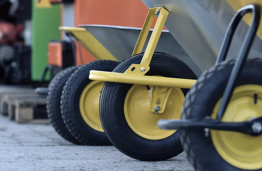Одноколесные тачки благодаря маневренности подойдут для узких дорожек, а двухколесные — если нужно возить грузы по неровной поверхности. Пневматические колеса хорошо едут по мокрой земле и песку, зато литые покрышки нельзя пробить.