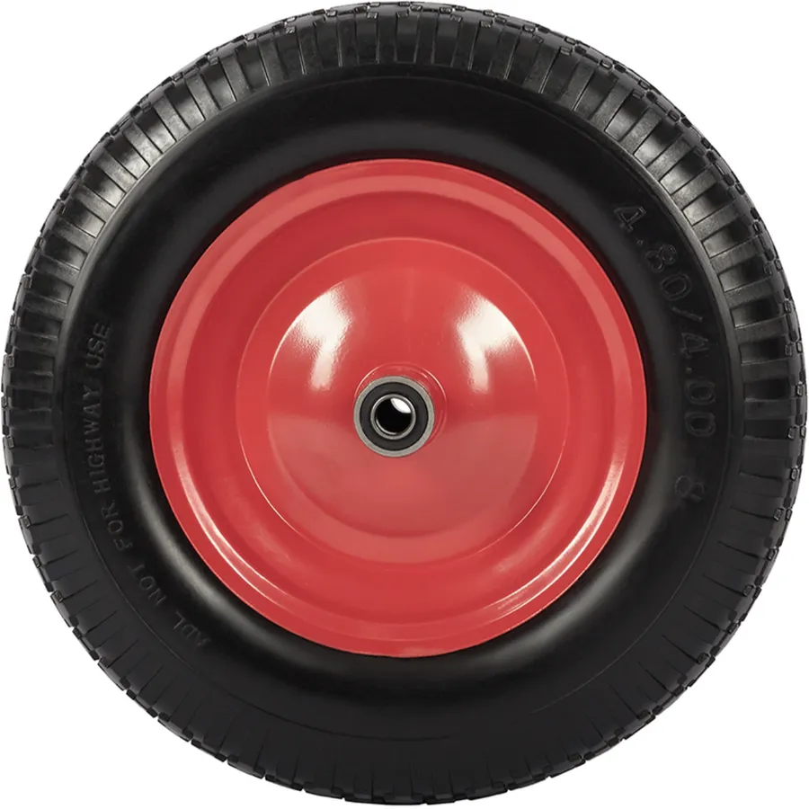 Тачка с хорошо накачанными пневматическими колесами без проблем едет по неровной поверхности, мокрой земле и песку. Даже полностью нагруженной тачкой довольно легко управлять. Минус пневматических колес в том, что камеру надо поддерживать в рабочем состоянии — периодически накачивать и иногда чинить или менять на новую. Такие колеса не слишком надежны для работы на стройке, где много предметов и поверхностей, которые могут повредить камеру: осколков, острых камней или гвоздей.