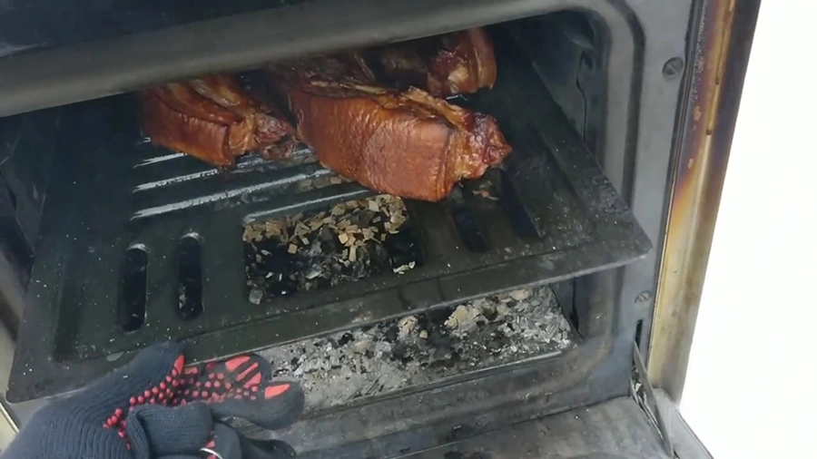 Копчение — главный и самый сложный этап, потому что процесс приготовления обычно контролируют только по времени. Поддерживать при копчении оптимальную температуру можно с помощью термометра. Некоторые рецепты предлагают сначала продукты сварить или запечь до полуготовности и только потом коптить для придания ему вкуса и аромата копченостей.