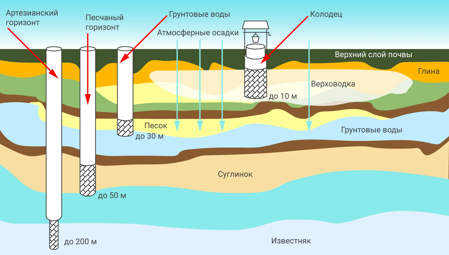 Прежде чем выкопать колодец, важно определить цель использования воды и выбрать подходящий водоносный горизонт: