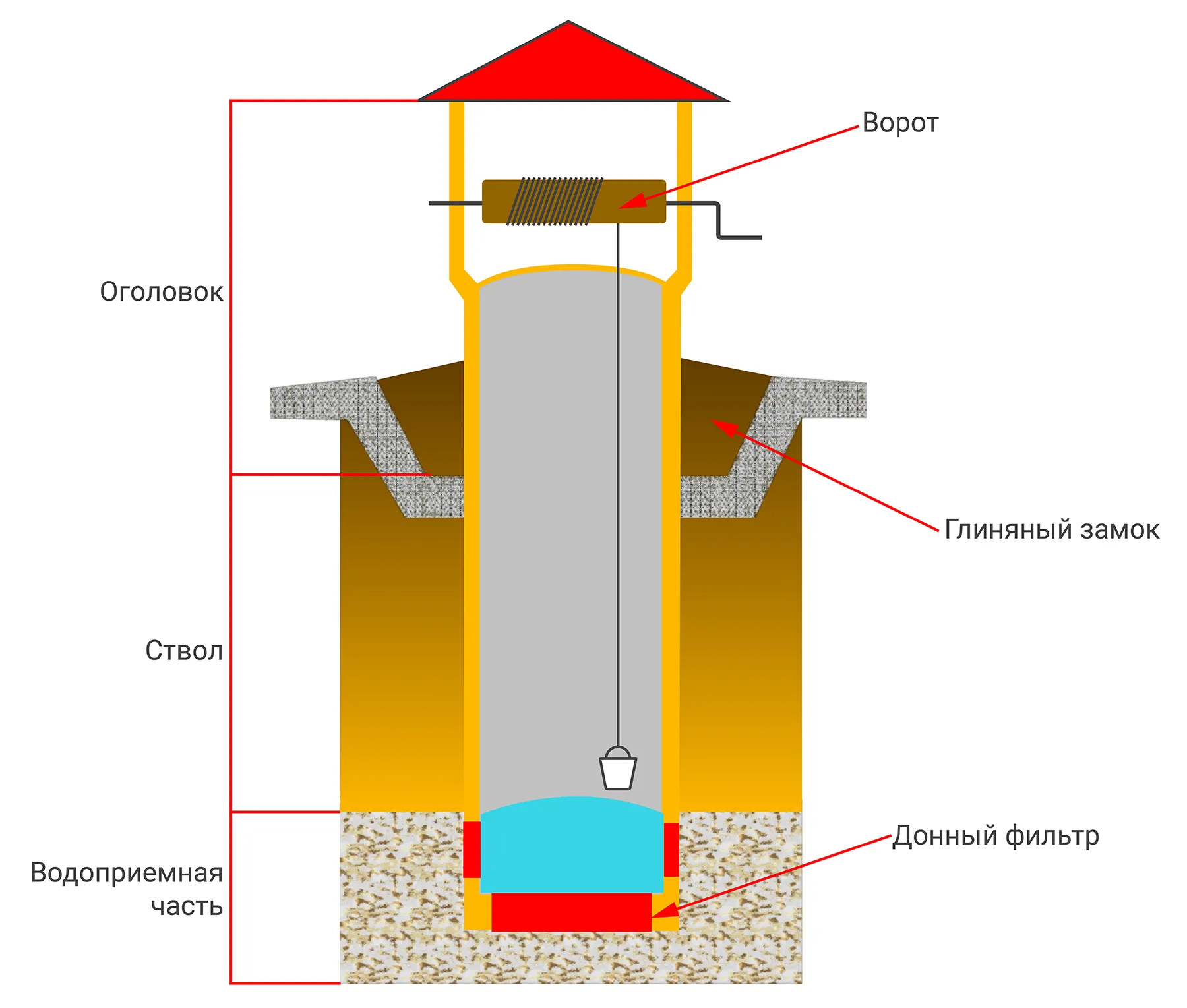 Основные элементы колодца: