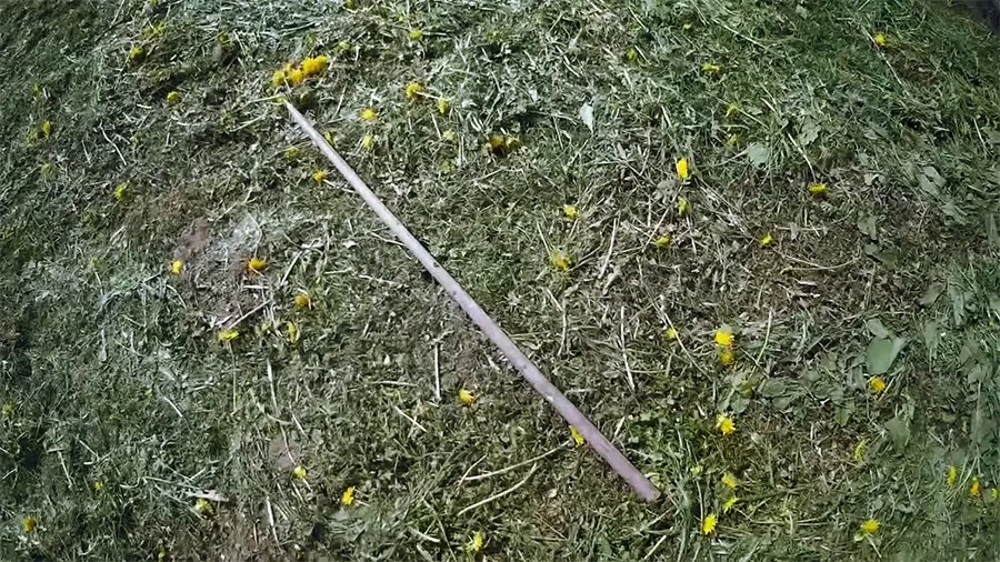 В землю, в центр будущего колодца поставьте небольшой черенок. Воткните в него саморез так, чтобы брусок не цеплял грунт и свободно вращался вокруг своей оси.