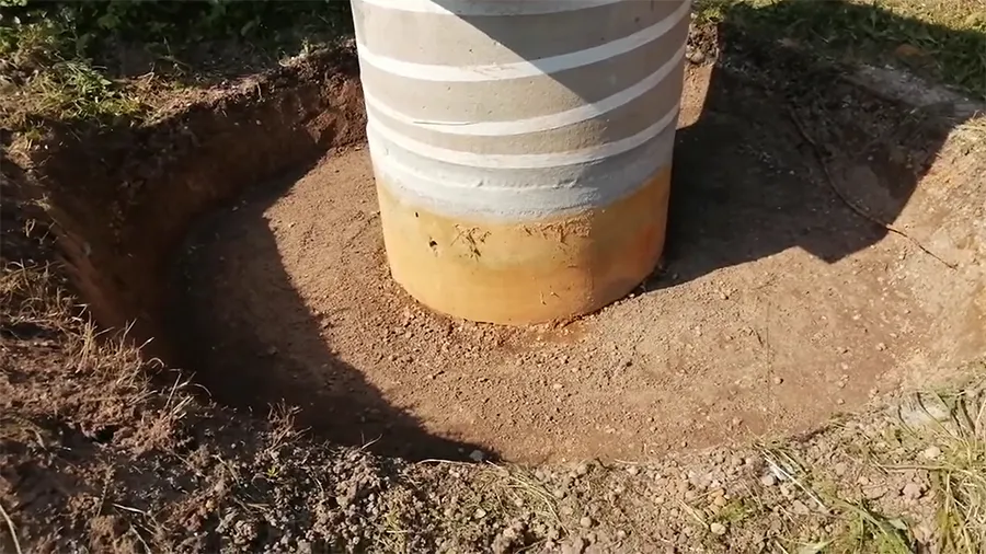 - Не допускайте, чтобы верхний край кольца был ниже уровня земли. Он должен всегда немного возвышаться над поверхностью. Это предотвратит осыпание грунта в шахту и защитит от обвала.
