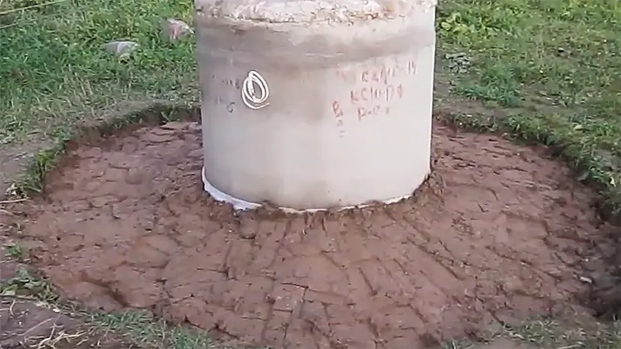 - Замок — это уплотненное кольцо глины шириной 0,5–1 м и глубиной до 0,7 м вокруг оголовка. Он блокирует дождевую и талую воду с поверхности.