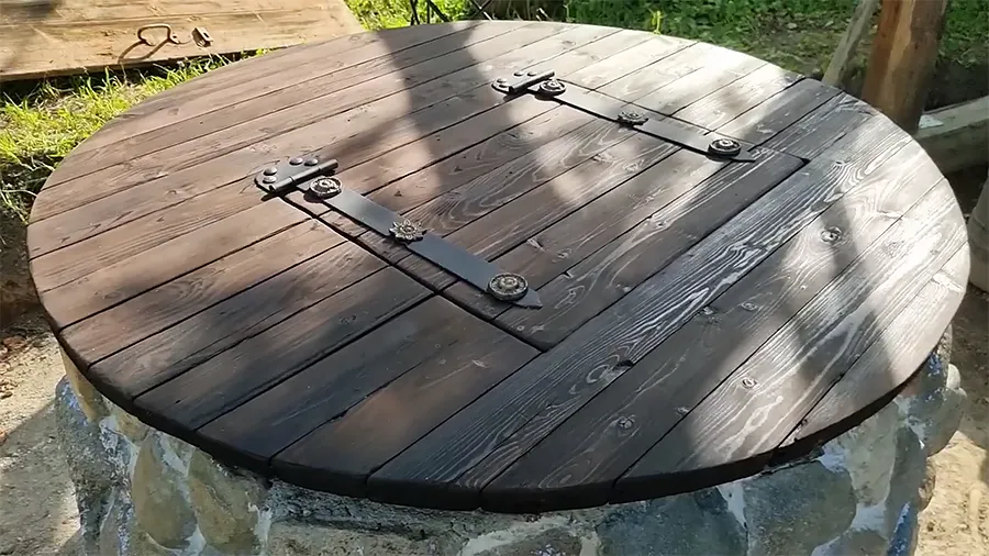 Для защиты от мусора колодец накрывают крышкой из досок или нержавеющей стали. Если в планах нет постоянного навеса, можно установить временный из пластика или поликарбоната.