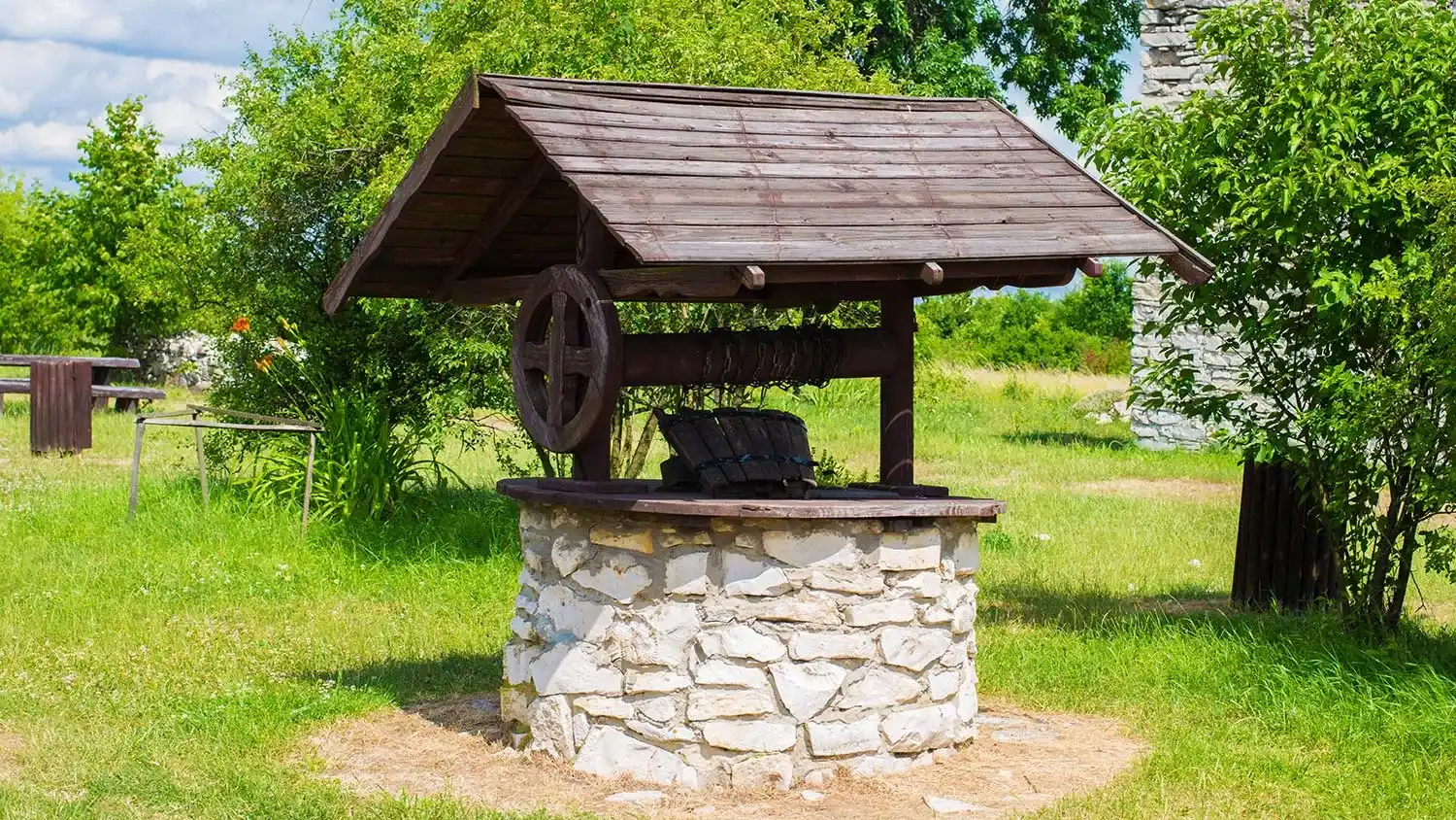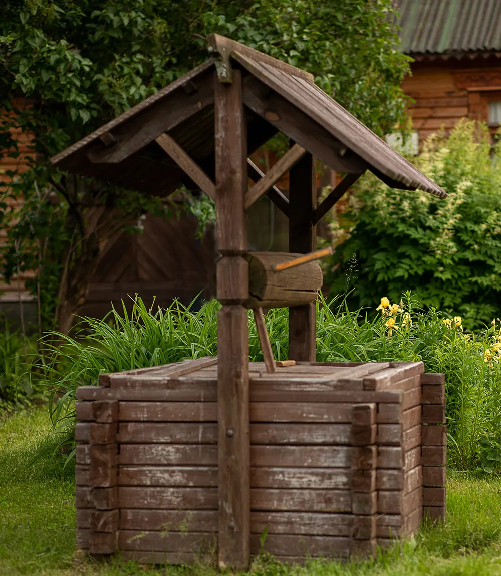 Чаще всего деревянные колодцы обустраивают для доступа к верховодке, где не нужна большая глубина. Подходят для сезонного водоснабжения: для полива на даче или как временное решение, пока не построен постоянный источник.