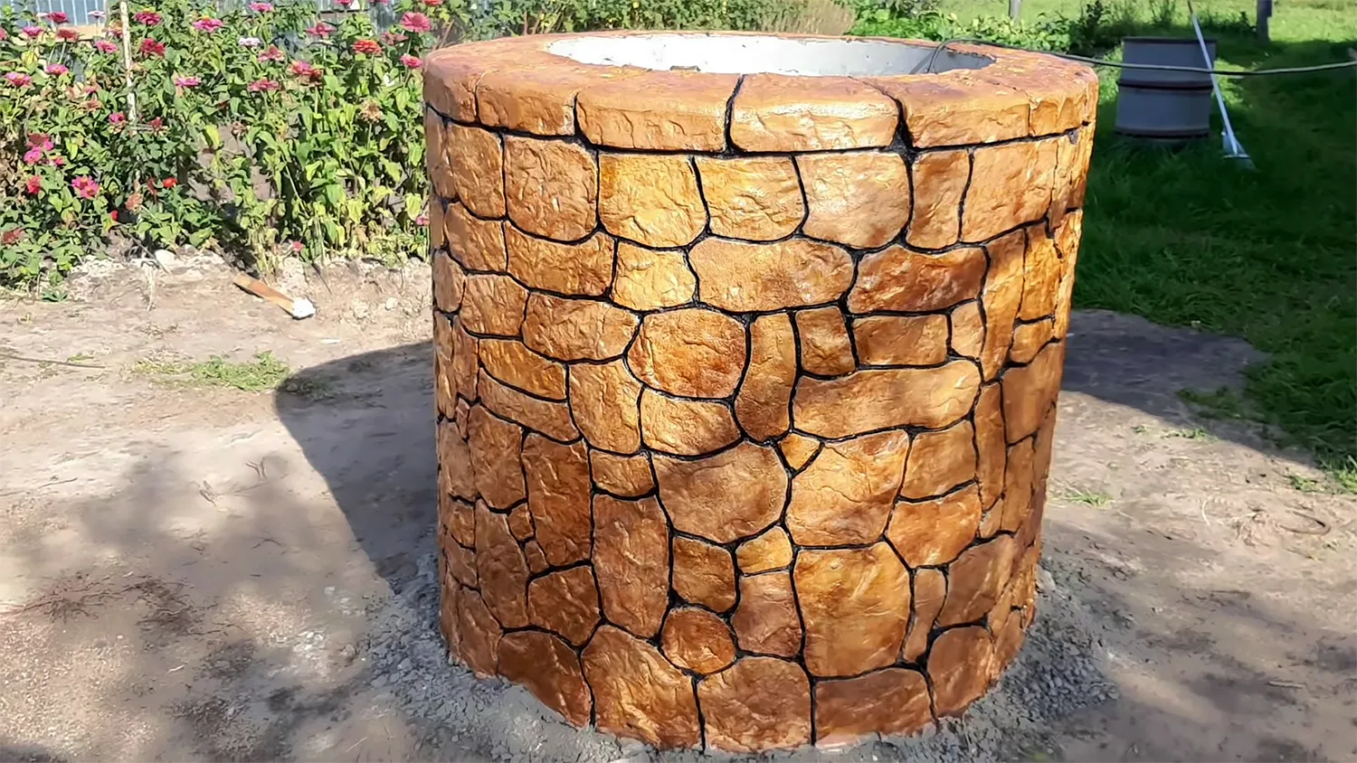 Верхнее кольцо колодца тоже можно оформить: