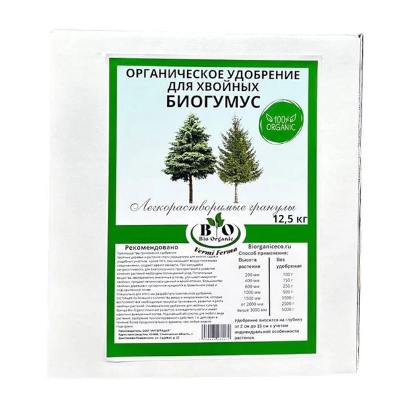 При посадке крупных декоративных разновидностей в посадочную яму внесите до 1 кг сухого биогумуса либо до 500 г гранулированного. Хорошо перемешайте с почвой, чтобы корешки не соприкасались с большим количеством чистого удобрения.