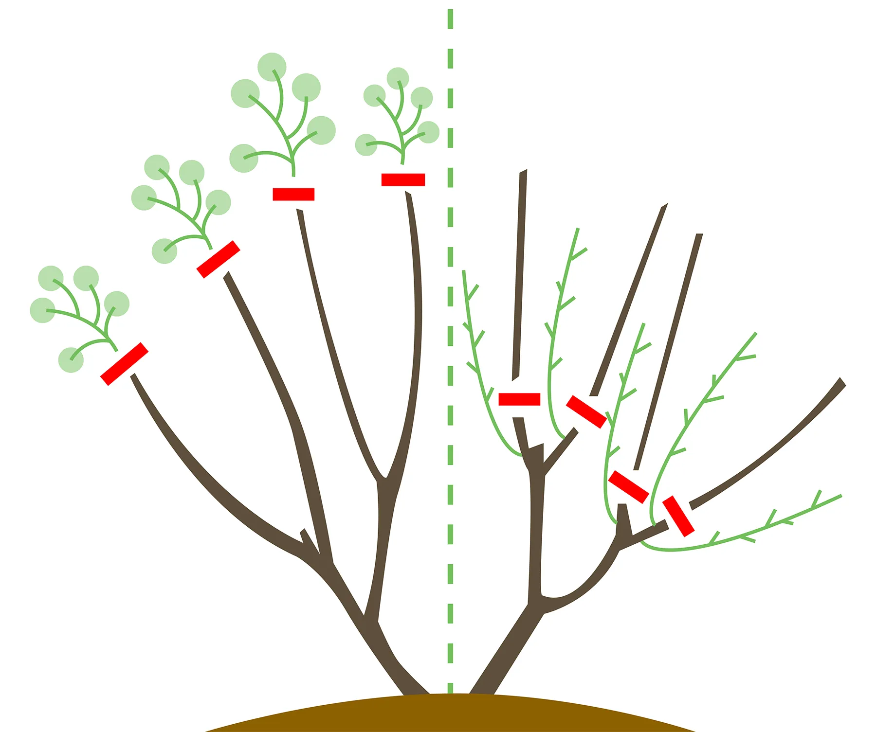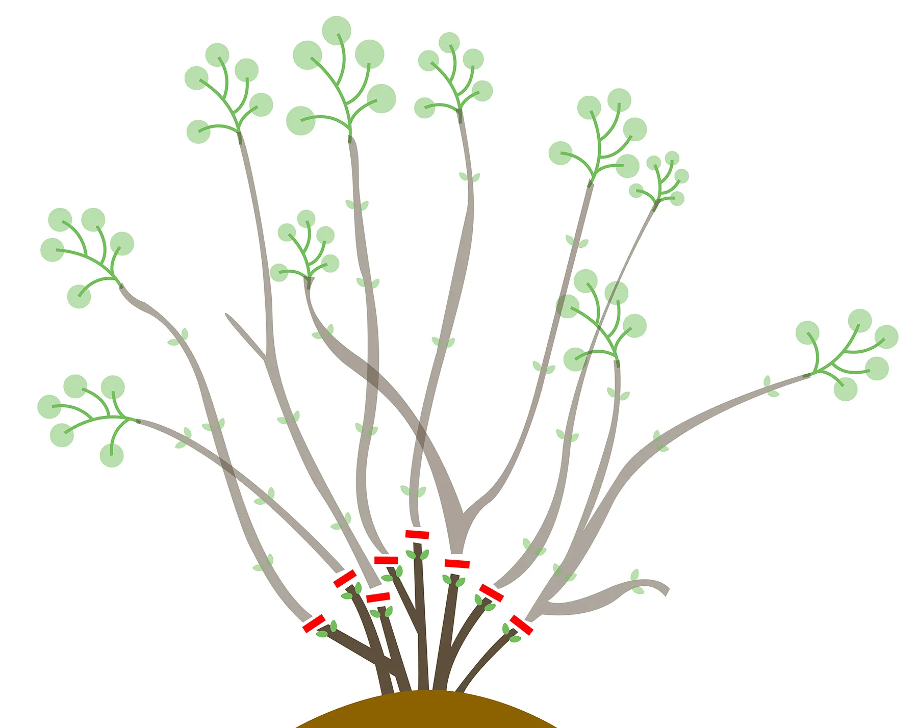 На схеме радикальная омолаживающая обрезка выглядит так: