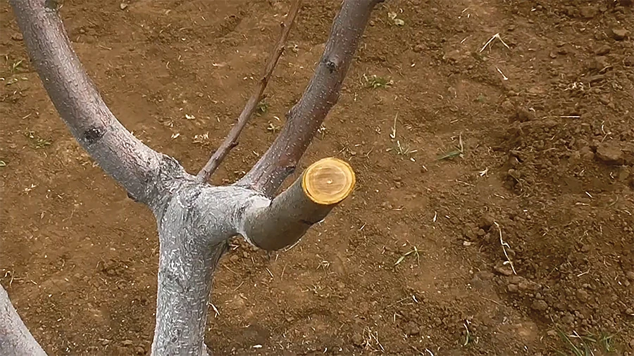Почки на плодовой древесине персика. Источник: YouTube | Аннушка Клематис (У-Дача)