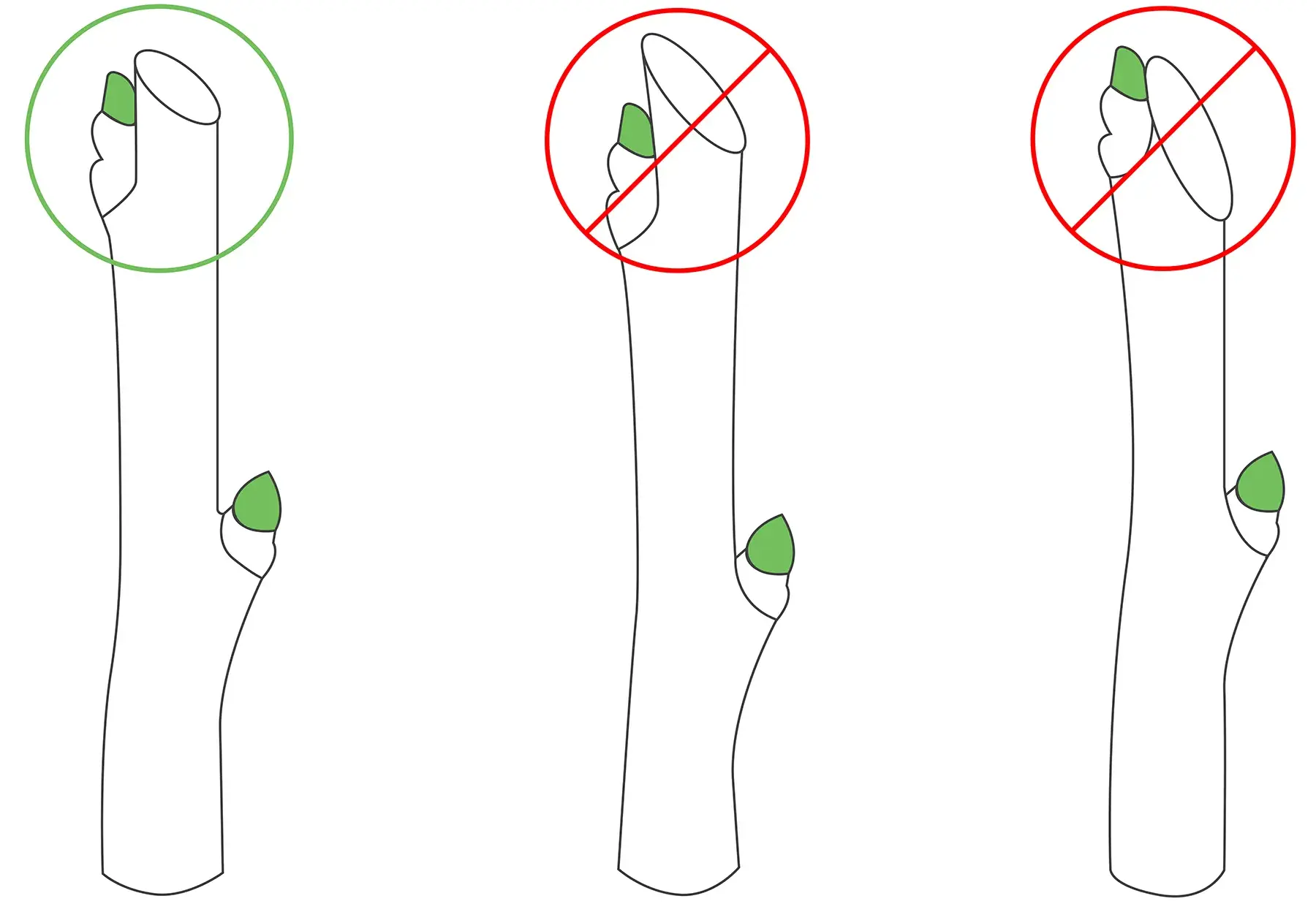 Многие новички боятся отрезать лишнее и оставляют небольшой «хвостик», но он засыхает и начинает загнивать. В месте спила развивается грибок. Иногда из пенька отрастают слабые побеги, которые загущают крону. Правильную обрезку делают по кольцевому наплыву, без лишней древесины.