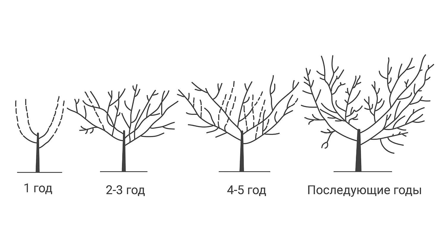 В возрасте с 2 до 5 лет дерево активно наращивает массу ветвей. В эти годы основное внимание уделяют образованию оптимальной формы кроны. Главная цель — чтобы она не загущалась и выдерживала вес урожая.