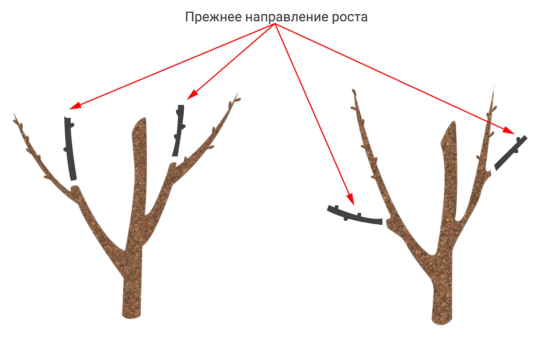 - Удалите все волчки и приросты, которые направлены внутрь, перекрещиваются или трутся друг о друга.