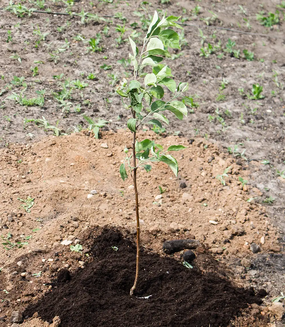 Затем раскладывают слой органики толщиной 5–7 см. Универсальные варианты — компост и торф с нейтральной реакцией. Мульча сохраняет влагу и постепенно улучшает структуру почвы. Важно оставить немного свободного пространства вокруг ствола, чтобы кора не начала преть.