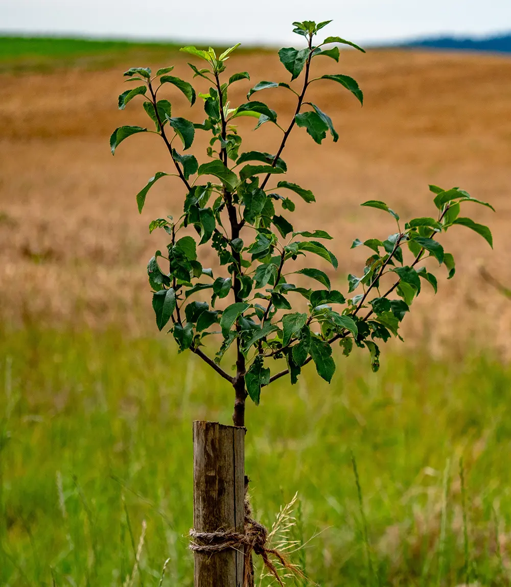 Обрезку проводят уже в первый сезон после посадки, если побег укоренился и тронулся в рост. У саженца нужно задать высоту штамба и направление будущих ветвей. Без этого крона вытянется вверх и будет неравномерной. Помните о главной цели всех мероприятий по весенней обрезке молодых яблонь — формирование разреженно-ярусной кроны, в которой все зоны будут получать максимально возможное количество света.