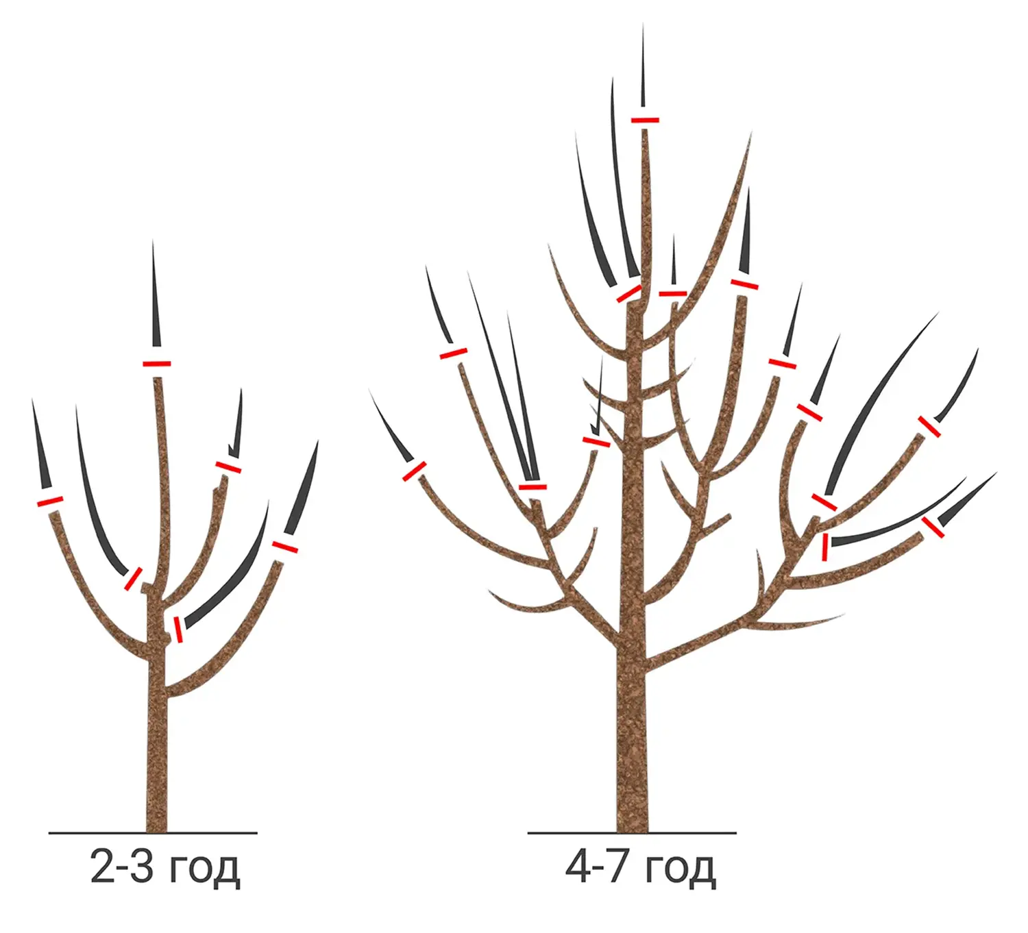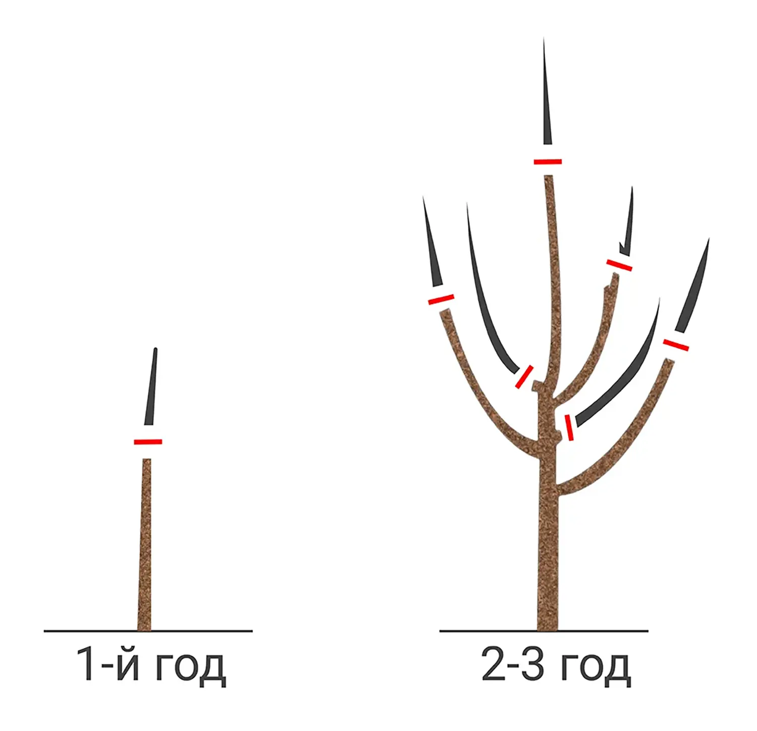 На третий год закладывают второй ярус ветвей. Для этого весной:
