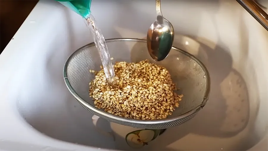 Промойте запаренную крупу кипяченой водой, чтобы она не слипалась. Пересыпьте в чистое сито, чтобы стекла лишняя вода.
