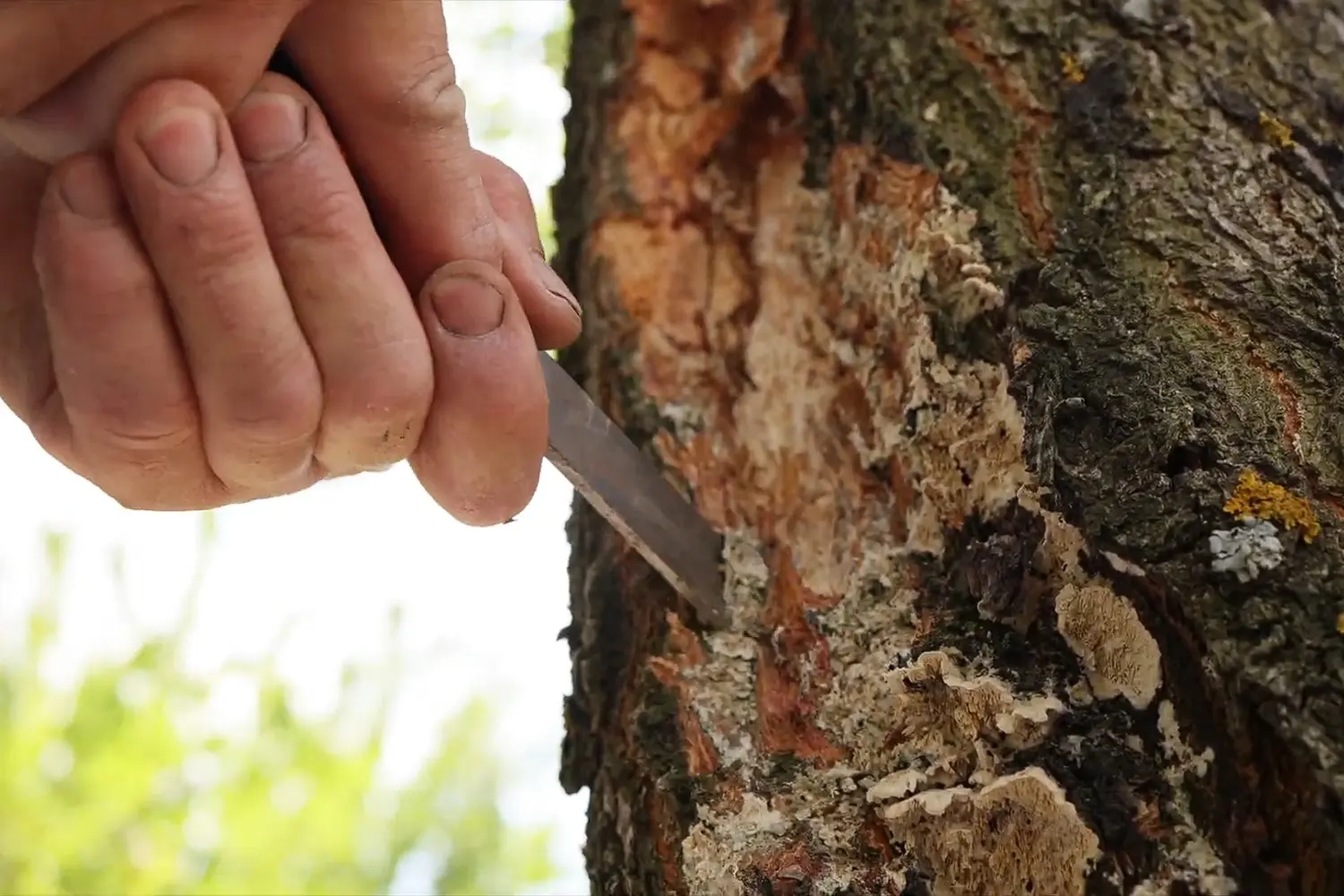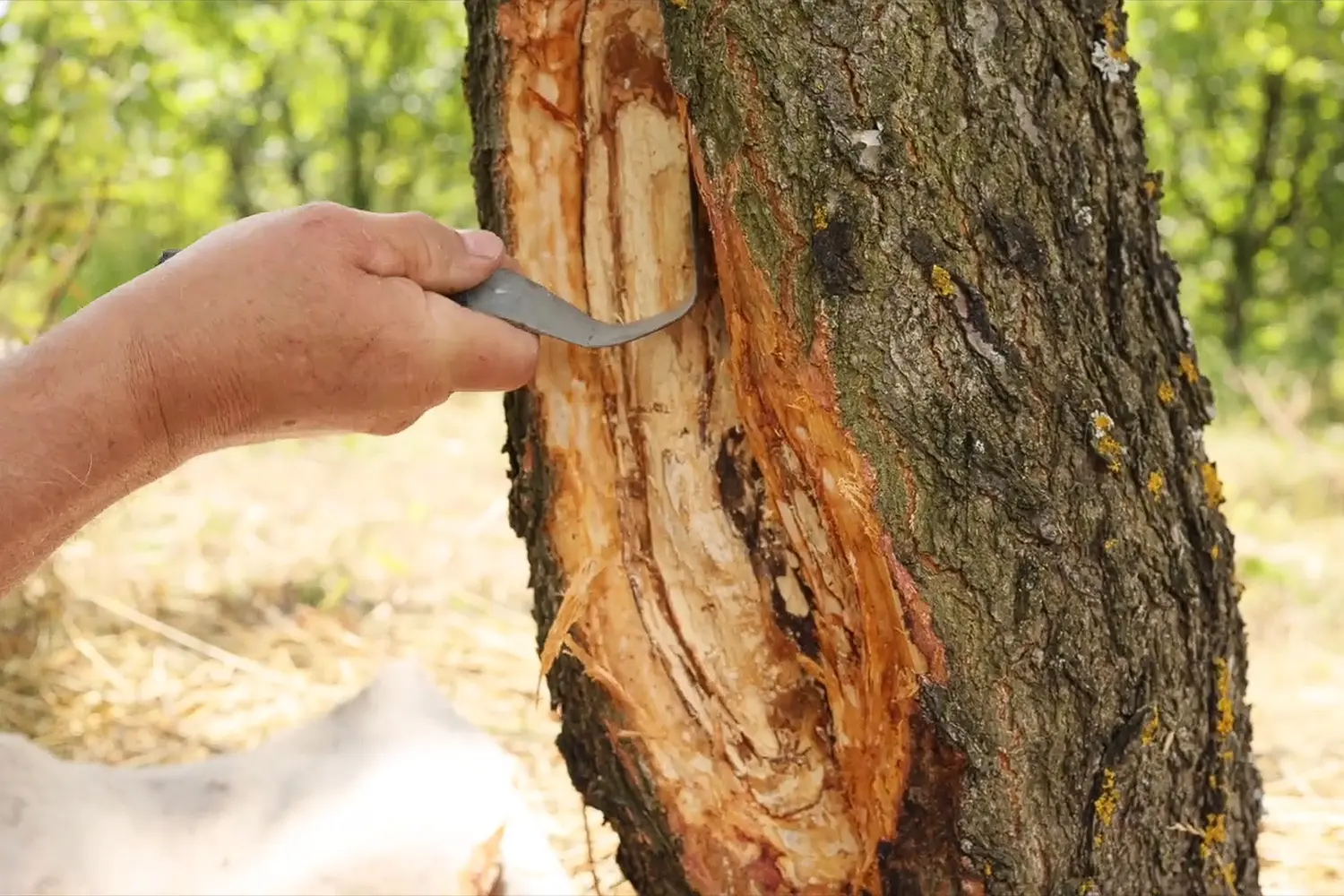 Зачистите рану. Ножом уберите всю сгнившую пораженную кору до живого слоя.