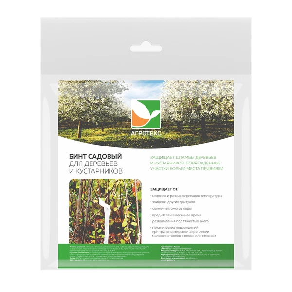 - Садовый бинт. Полоски из нетканого материала, пропитанные воском, маслами или фунгицидами обвязывают вокруг ствола.