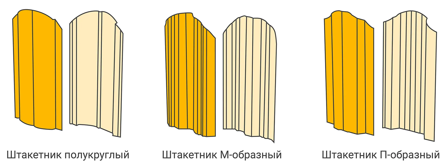 На рынке представлено множество вариантов, которые различаются по материалу, покрытию, форме, цвету и способу крепления. Рассмотрим основные виды штакетника.