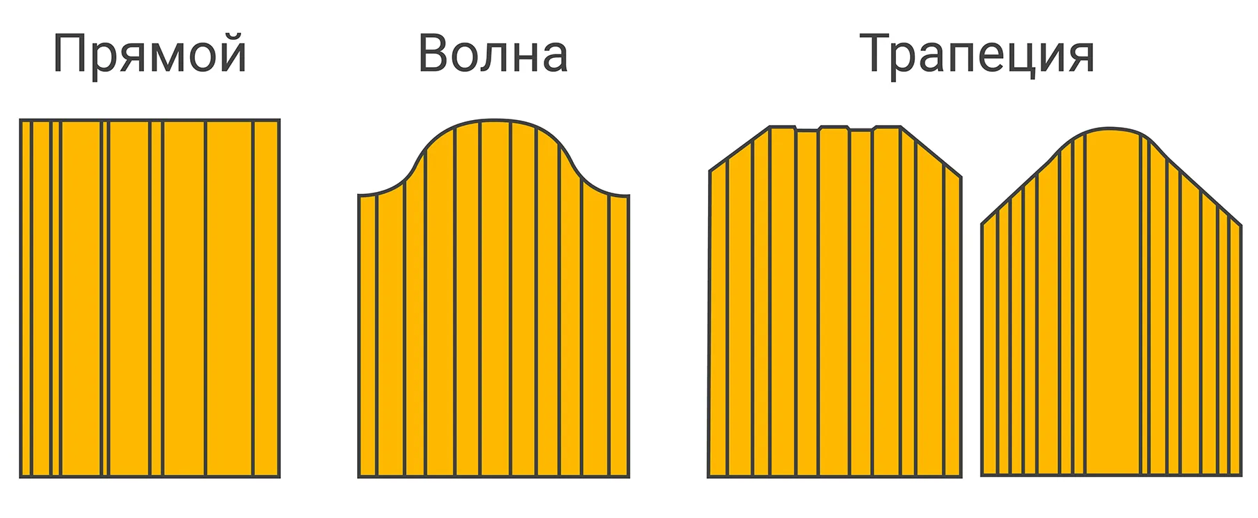 По форме среза, то есть верхушке планки, штакетины можно разделить на основные группы: