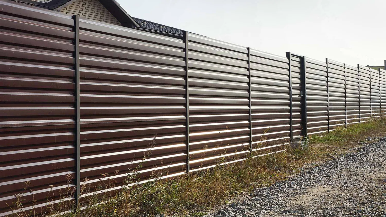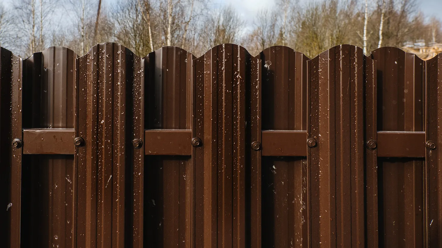 - Отсутствие деформационных швов. При большой длине забора (более 15–20 м) стоит оставлять небольшие зазоры между секциями, чтобы металл не «играл» при перепадах температуры.