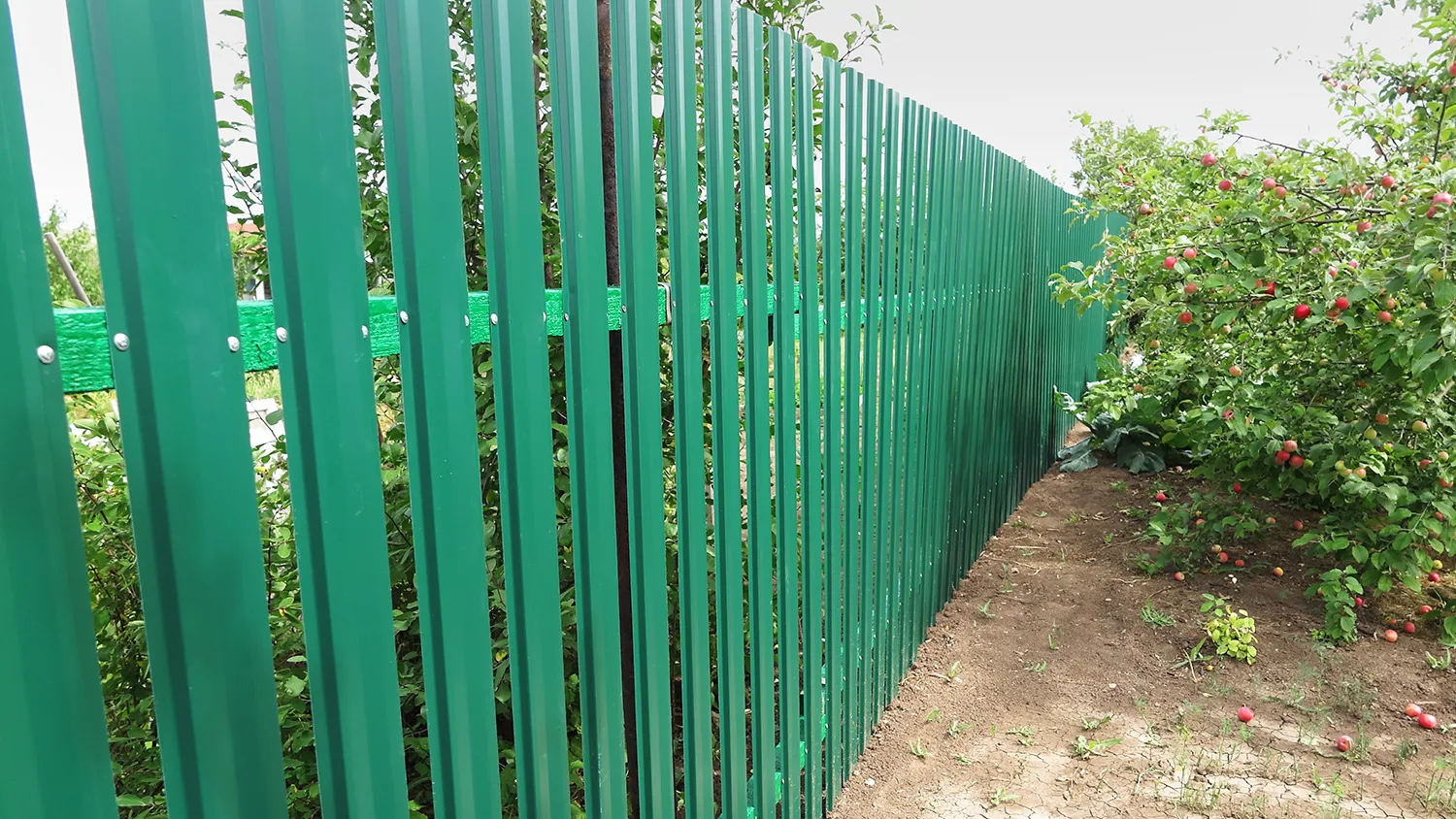 Металлический штакетник не требует сложного ухода. Раз в сезон или при загрязнении очищайте планки водой из шланга или мягкой щеткой. Проверяйте, не ослабли ли саморезы, не появились ли повреждения на краске. При необходимости обновите покрытие антикоррозийной эмалью. Если какая-то планка деформировалась — ее легко заменить на новую.
