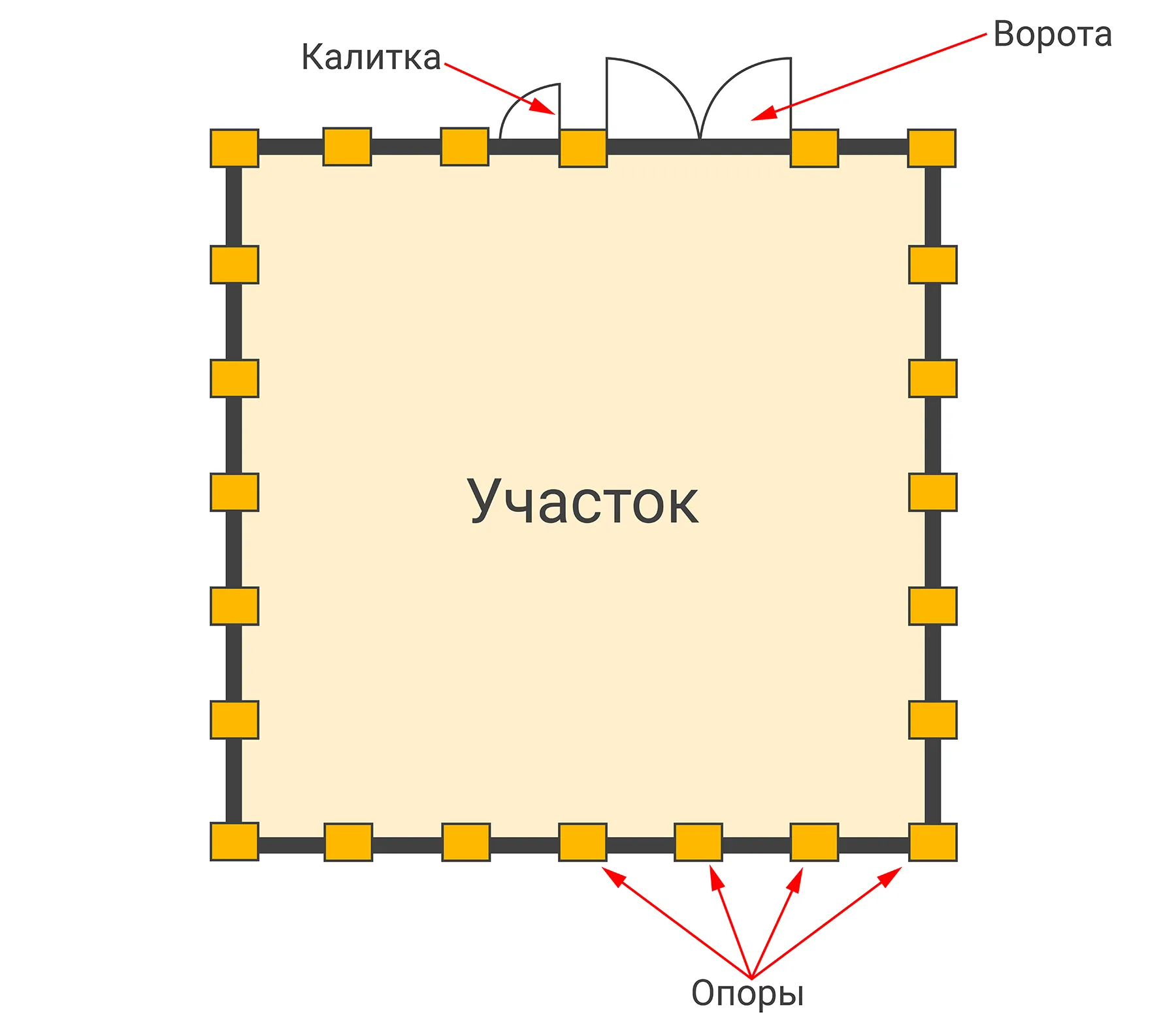Если участок неровный или с уклоном, это тоже стоит отразить на схеме — так легче предусмотреть, как пойдут пролеты.