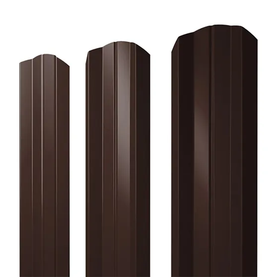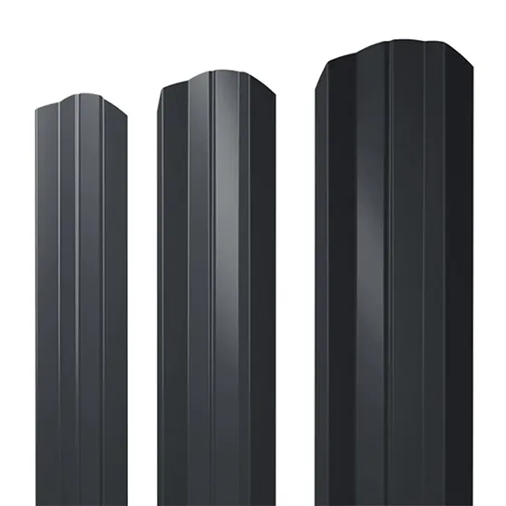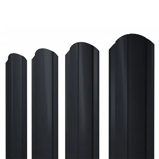 - Трапециевидные — геометрически выраженный срез, верх часто заострен. Добавляет ограждению декоративности и выразительности. Используют в стилизованных или классических решениях (например, в оградах с ковкой или имитацией кованых элементов).