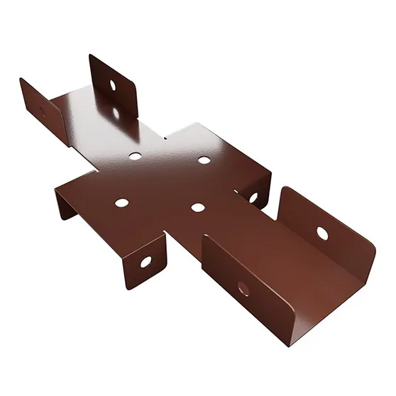 Такие крепления используют, чтобы надежно зафиксировать лаги на опорных столбах. Кронштейны представляют собой металлические уголки с отверстиями под саморезы или болты. Название «Х-кронштейн» связано с формой — на срезе он напоминает букву Х.