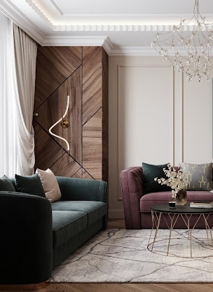 Профессионалы считают пропорции не по формуле, а на глаз. Причем учитывают не только натуральное дерево, но и все элементы, имитирующие его: ПВХ-панели, мебель из любых материалов, оклеенную интерьерной пленкой, кварцвинил. А вот мебель из дерева, окрашенную так, что ее текстура не видна, не учитывают. При расчете пропорций нужно иметь в виду все поверхности, включая пол, мебель, полки, оконные рамы, светильники и даже безделушки на полках.