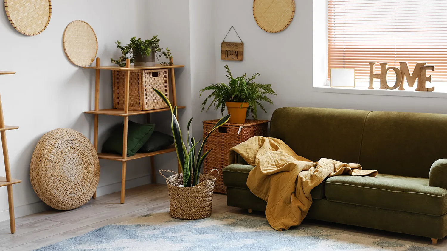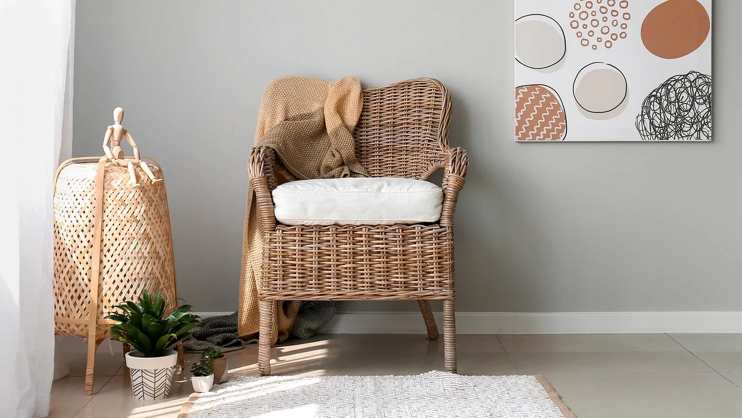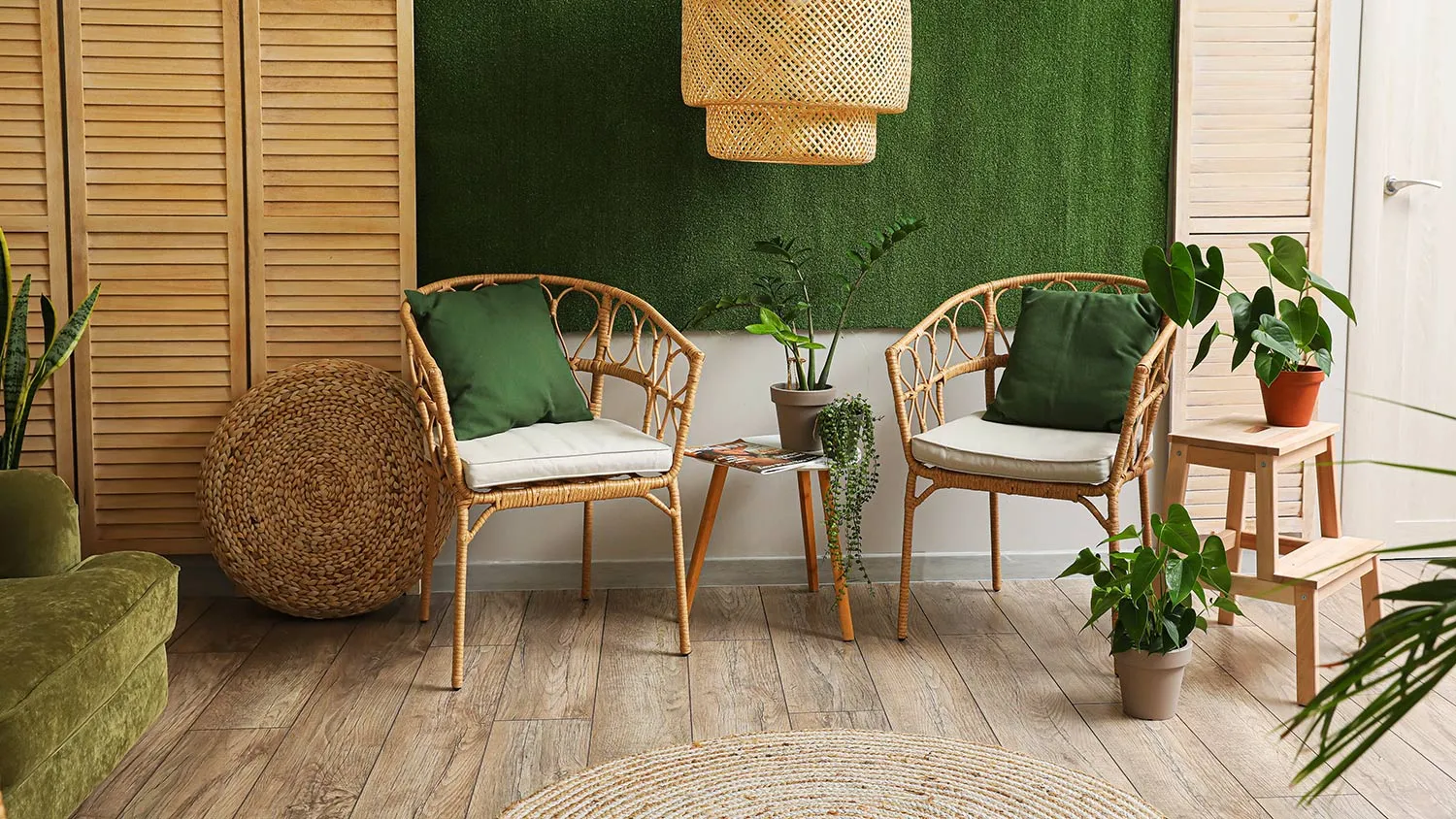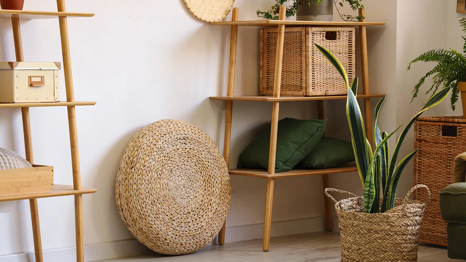 - Сырье растительного происхождения. Лоза, ротанг, бамбук — материалы, из которых создают уникальные предметы интерьера в экостиле, притягивающие взгляд.