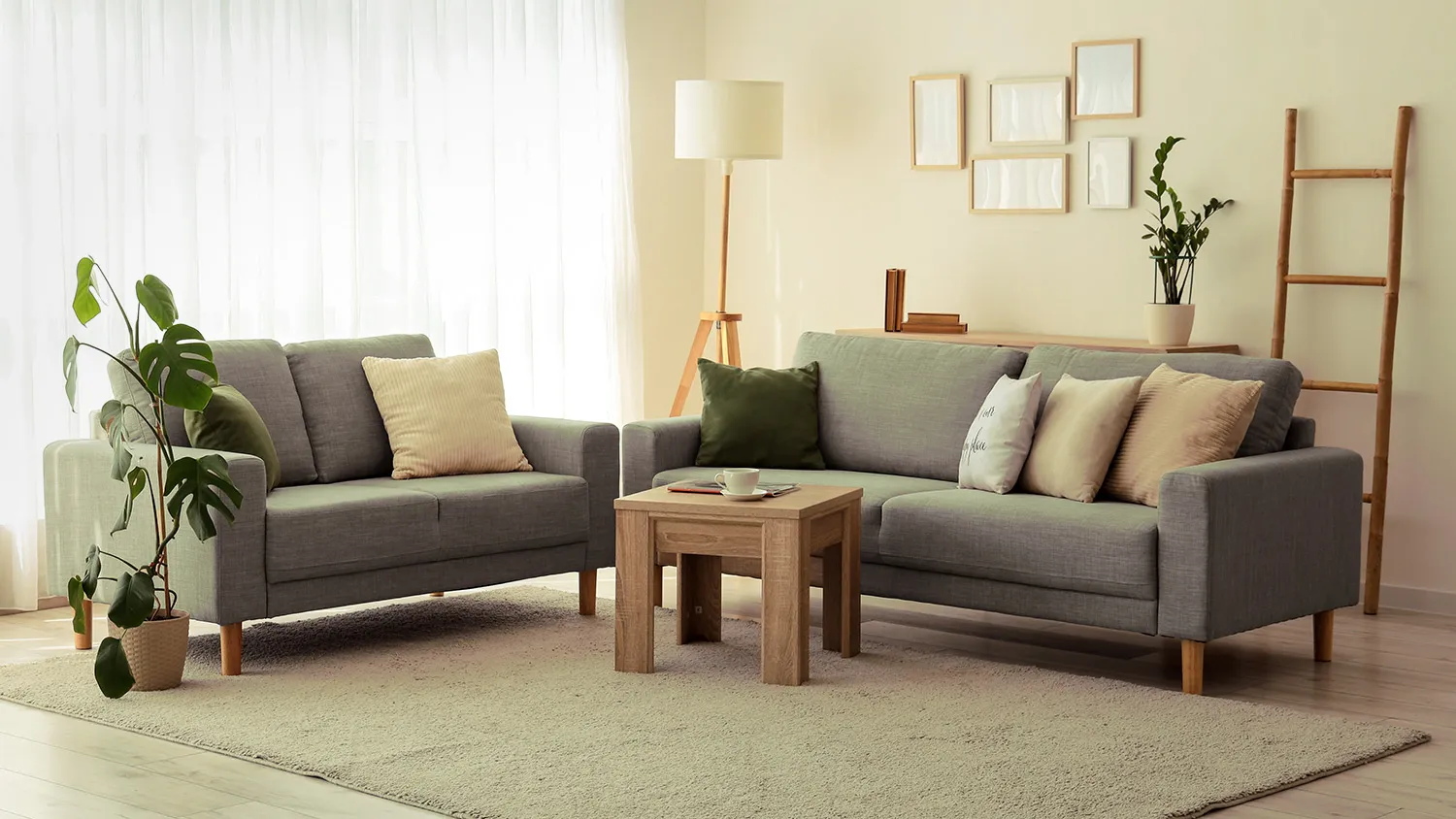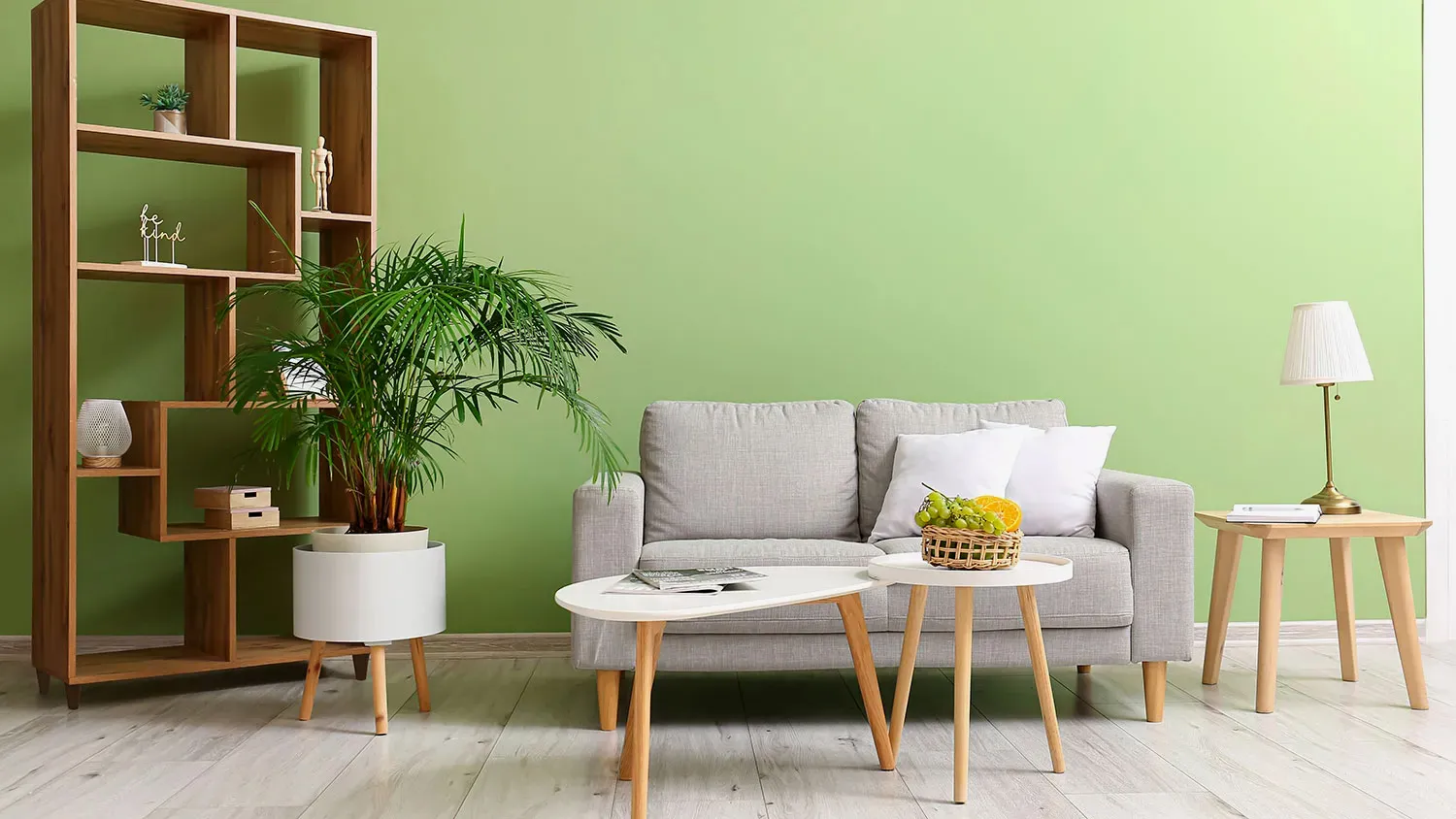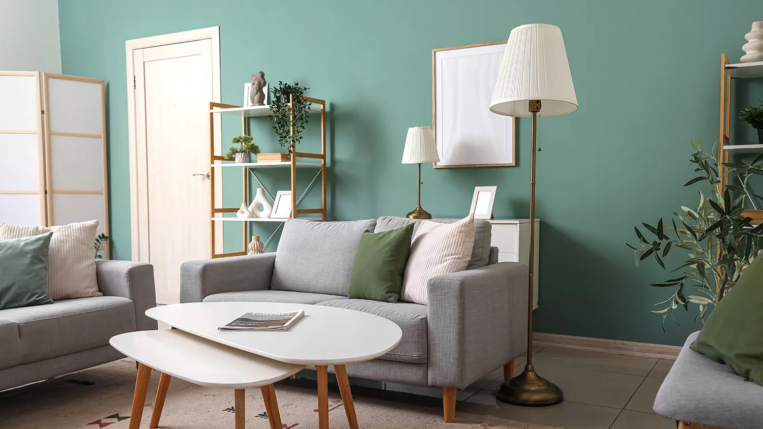 - Нейтральная палитра цветов. Зеленый, бежевый, песочный, коричневый, белый — спокойные оттенки, создающие уют и расслабляющую обстановку. Яркие цвета тоже возможны, но в небольшой пропорции и в виде приглушенных тонов, приближенных к тем, что встречаются в настоящих пейзажах.
