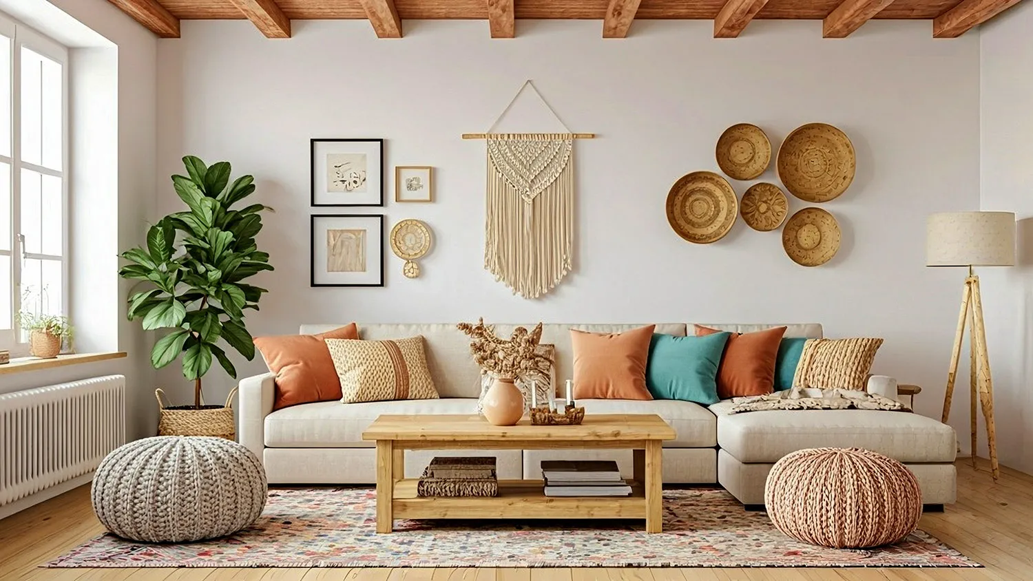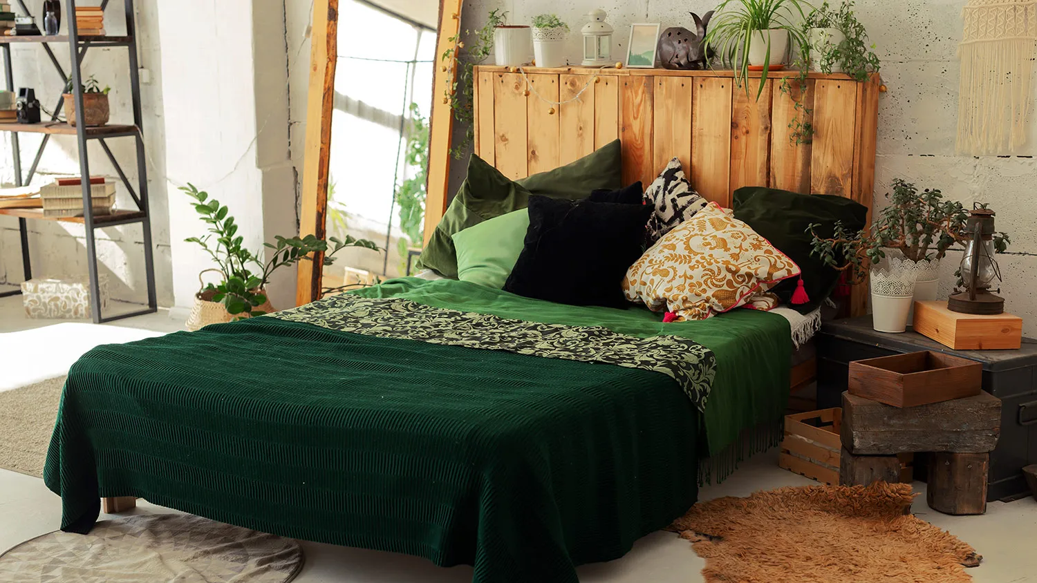 При сочетании в интерьере бохо и экостиля прослеживается цветовой контраст, который напоминает о разгаре осени. Зеленые и коричневые тона оттеняют красные, оранжевые и синие. Они будто немного спорят друг с другом, но в итоге смешиваются в гармоничный хаос.