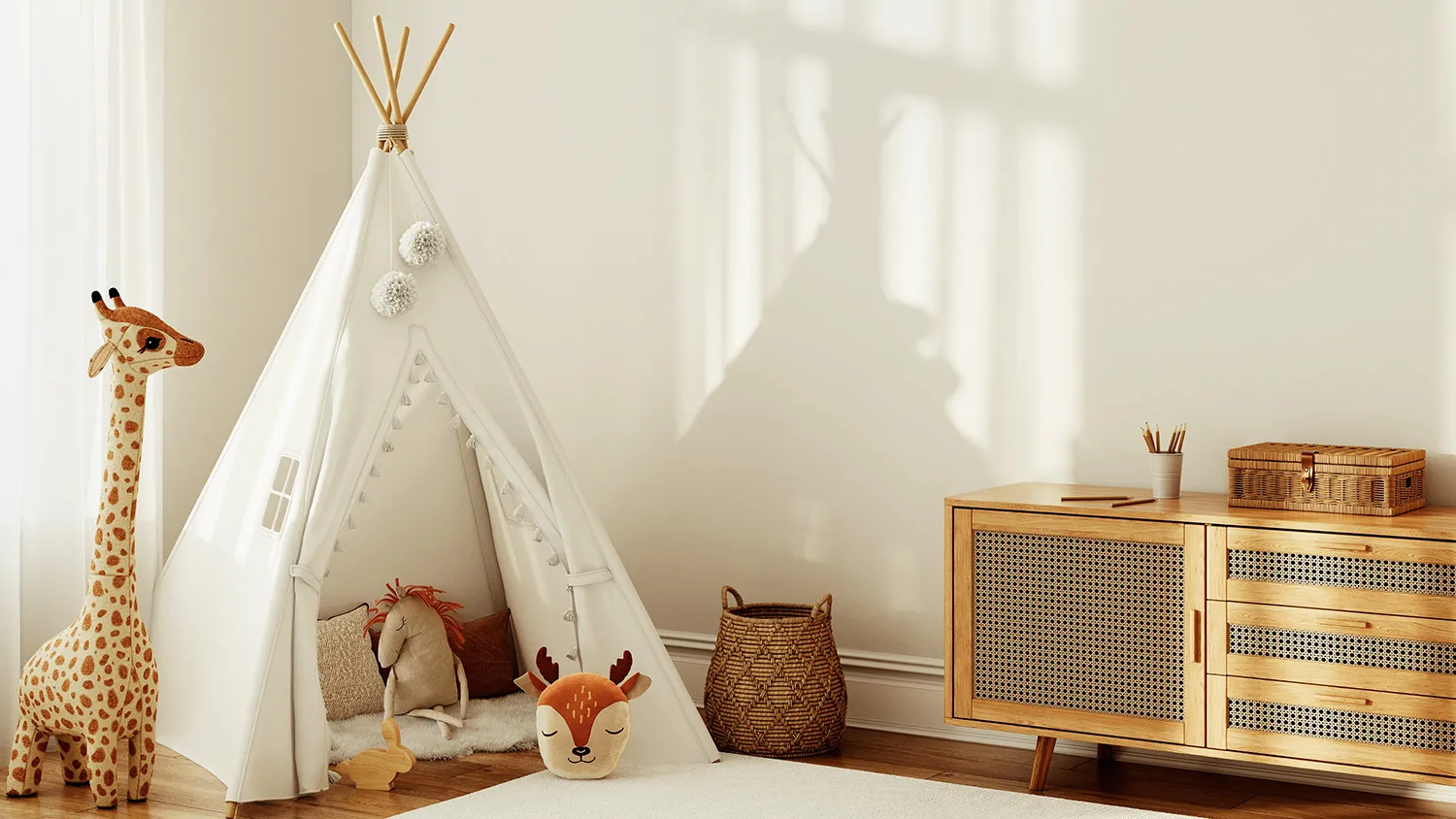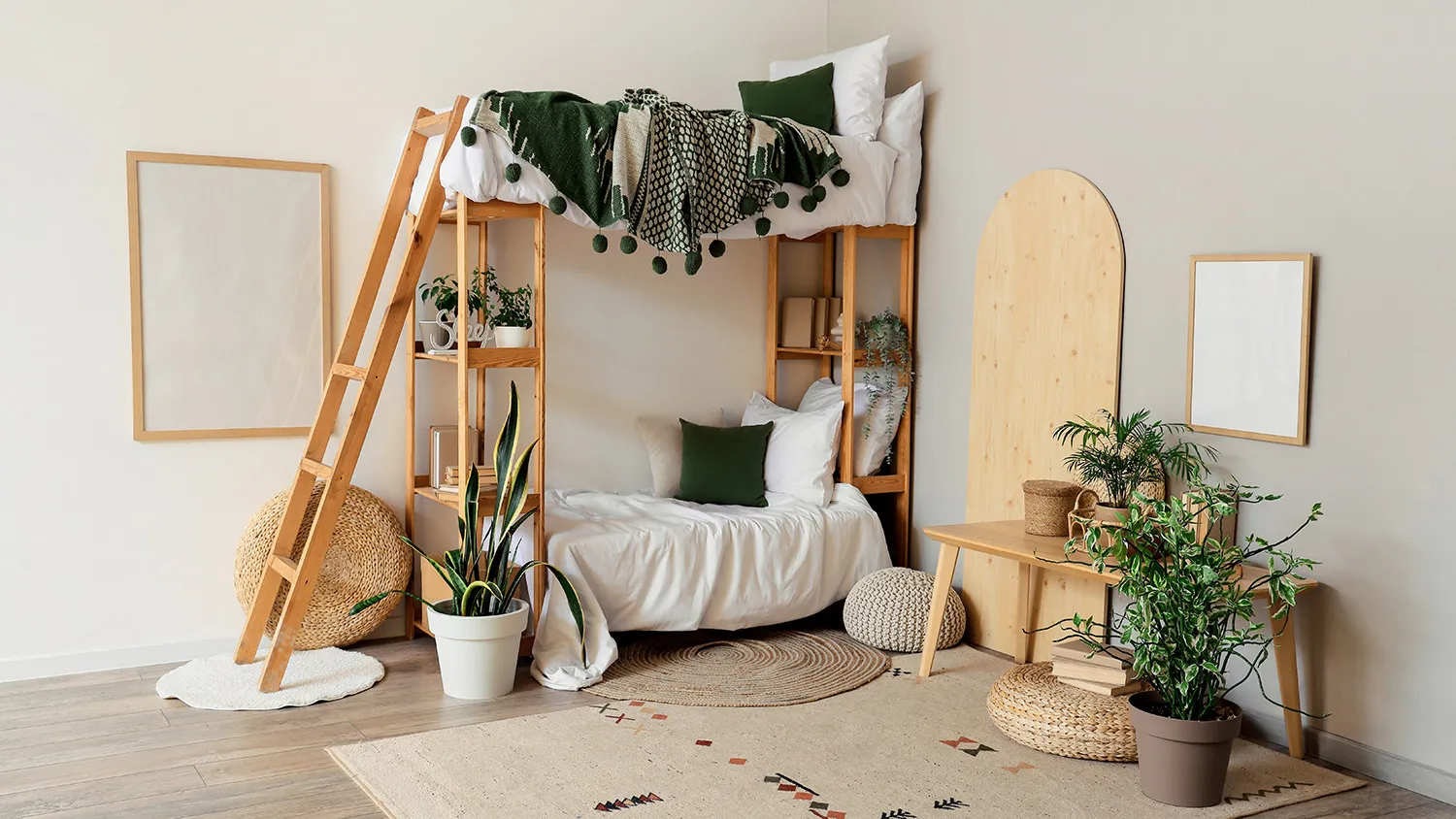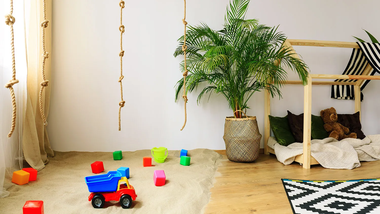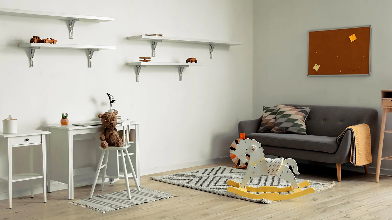 Узнайте большеЭкостиль предлагает большое разнообразие для оформления игровой зоны. Хорошо вписываются в концепцию вигвамы, канаты, веревочные лесенки, подвесные кресла-макраме. Оригинально смотрятся настенные конструкции в виде домиков. Для хранения игрушек можно предусмотреть полки из досок. Стильным дополнением зоны рабочего стола будет пробковая панель для заметок.