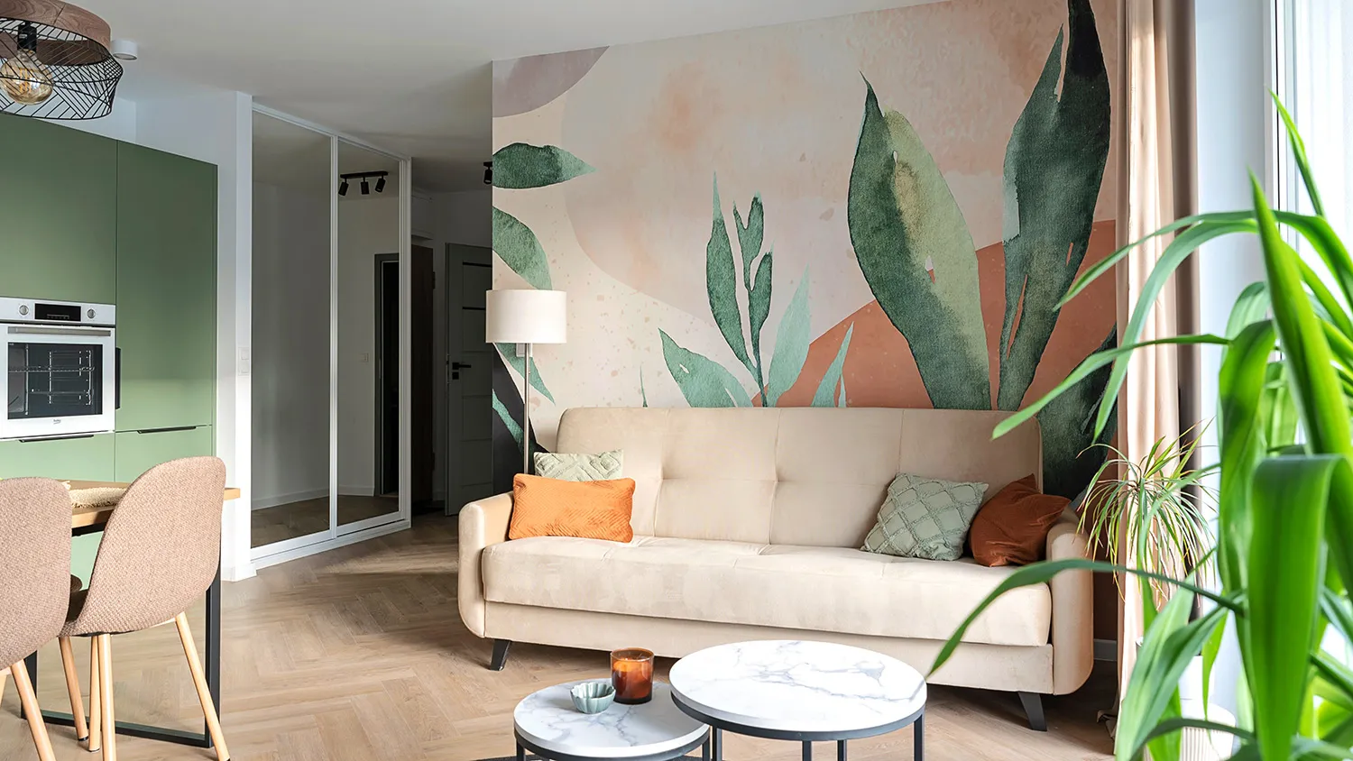 Растения олицетворяют близость к природе и поддерживают здоровую атмосферу внутри помещения. А еще это хороший способ расставить зеленые акценты в почти монохромном пространстве.