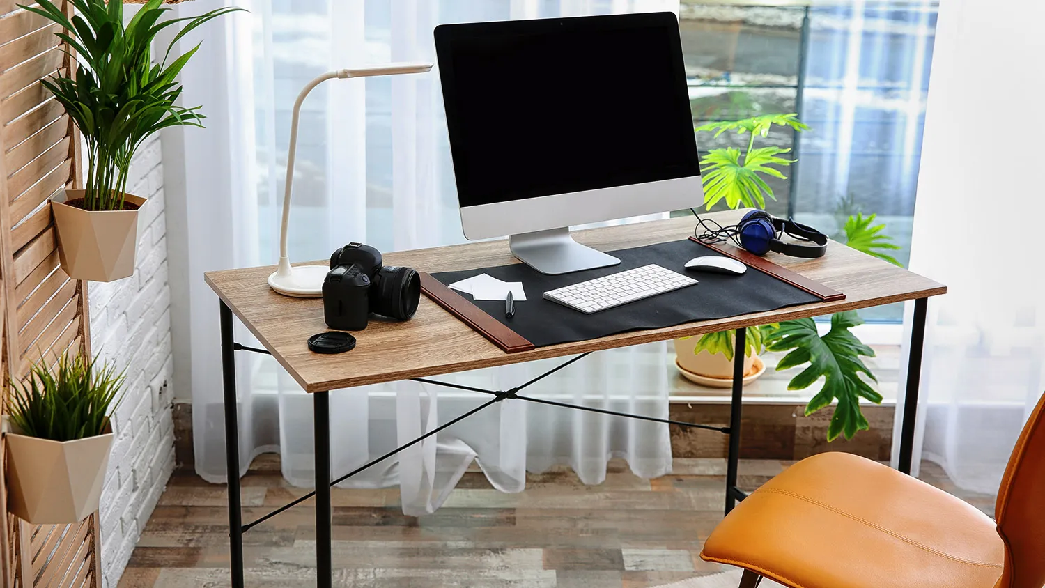 Для обустройства рабочего места в экостиле необходимо правильно подобрать мебель. Письменный стол может быть навесным (прикрученным к стене), на ножках или на тумбах с выдвижными ящиками. Главное — чтобы он был из дерева. Разрешены минималистичные модели на металлических ножках, но такие вставки должны быть лаконичными, чтобы не перетягивать на себя внимание.