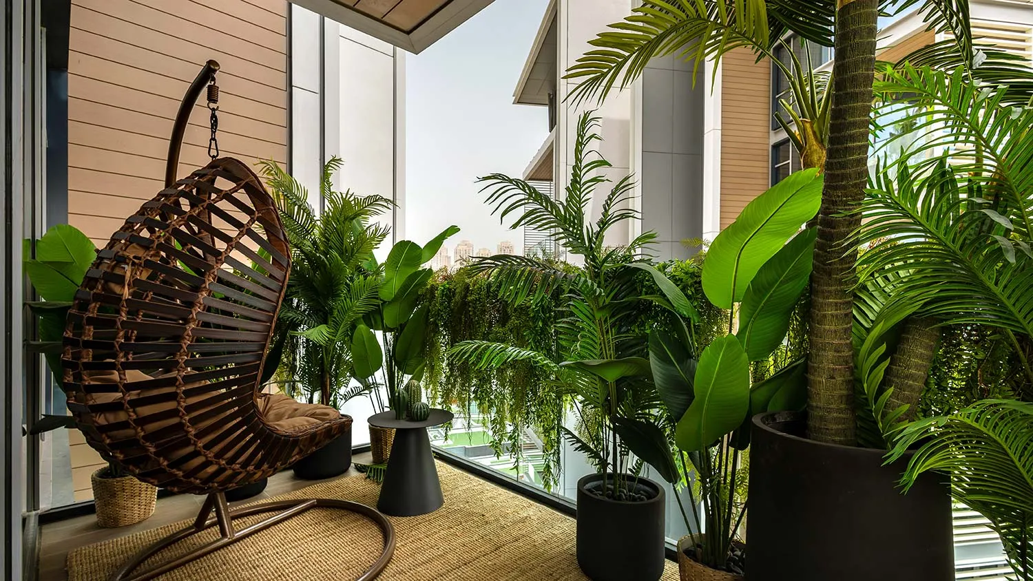 Чаще всего балкон и лоджия в экостиле выполняют функцию уютной зоны отдыха в духе диких тропиков. Такая обстановка позволяет отдалиться от городской суеты и насладиться окружающей зеленью. Чем меньше ее за окном, тем больше растений стоит разместить на свободных местах.