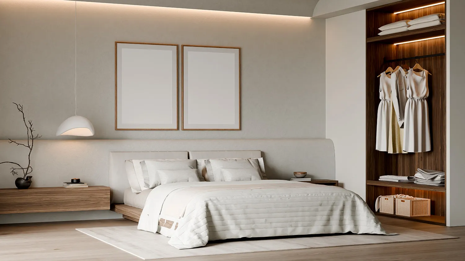 В спальне важно обеспечить мягкий приглушенный свет с цветовой температурой до 3000 К. Опционально в комнате располагают зону для чтения, туалетный столик, гардероб. Отдельным функциональным зонам необходимо организовать дополнительную подсветку.