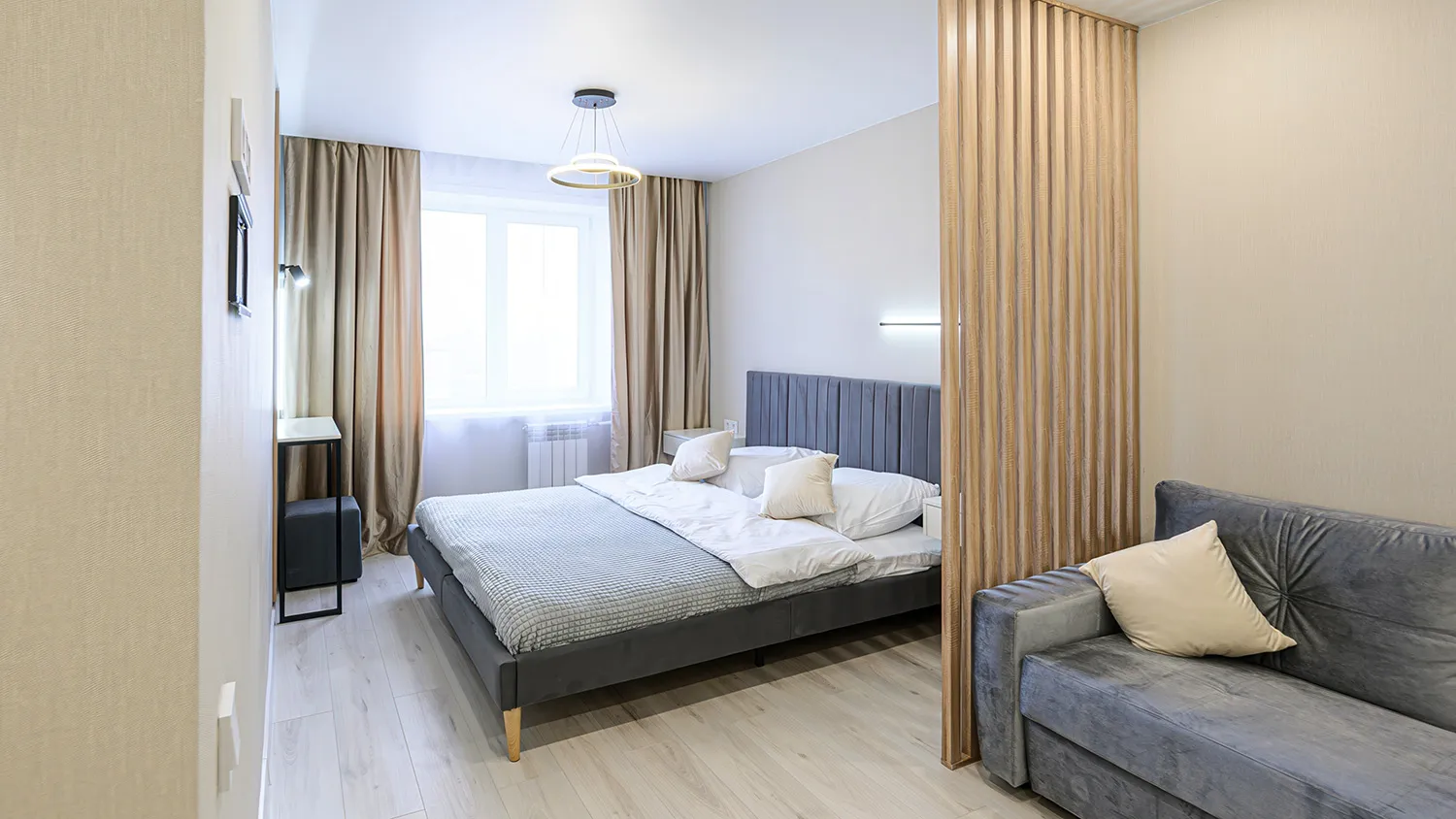 - Многофункциональность. Встроенные шкафы, складные столы и модульные конструкции экономят пространство.