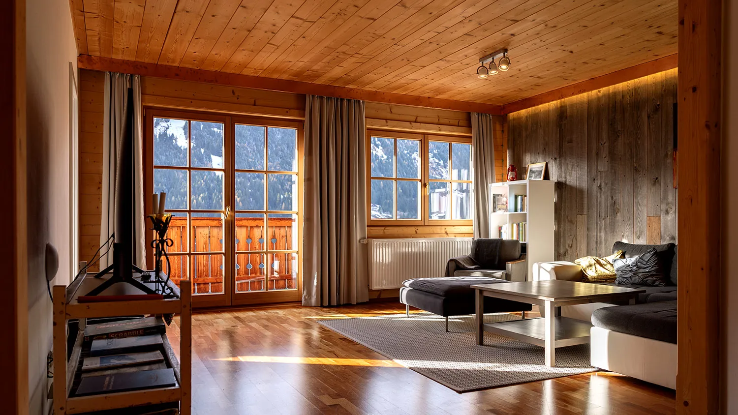 - раздвижные полотна из массива дерева твердых пород — тяжелая конструкция добавит интерьеру аутентичности, особенно если оставить кромку необработанной
