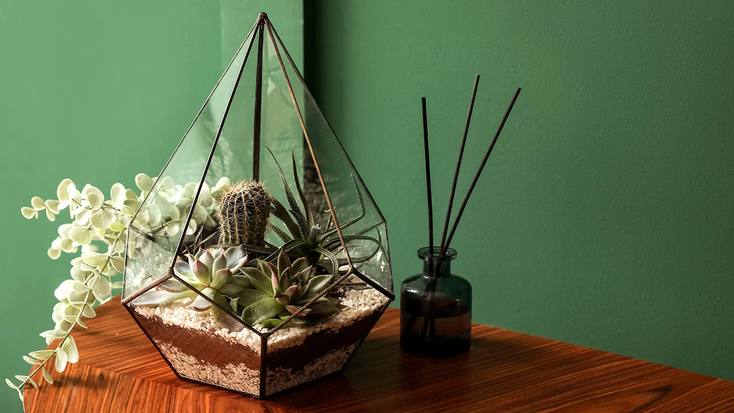 В качестве альтернативы или дополнения к классическому озеленению можно использовать стильный тренд современных интерьеров — флорариум. Это декоративная емкость из стекла, предназначенная для содержания и разведения растений. Флорариумы бывают разных размеров и с разными сценариями оформления.