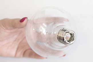 После удаления контакта аккуратно сломайте стеклянный изолятор. Его мелкие острые осколки легко разлетаются вокруг — будьте осторожны! Вытряхните содержимое из лампочки и хорошенько промойте ее, высушите, отложите в сторону.