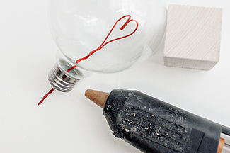 Разместите сердечко внутри лампочки, по центру. Кусачками отрежьте лишнюю проволоку. Размеры сердечка зависят от диаметра отверстия в основании лампочки. Если сердце большое — согните его, просуньте в лампочку и аккуратно расправьте отверткой.