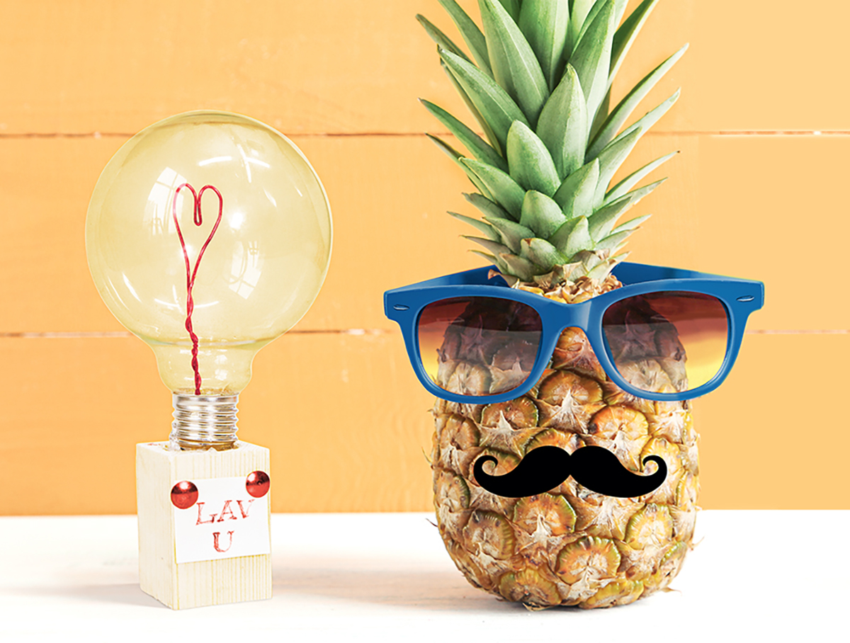 С помощью гвоздя и молотка проделайте отверстие в деревянном основании. Воткните в него «корни» сердечка. Приклейте их и цоколь лампочки.