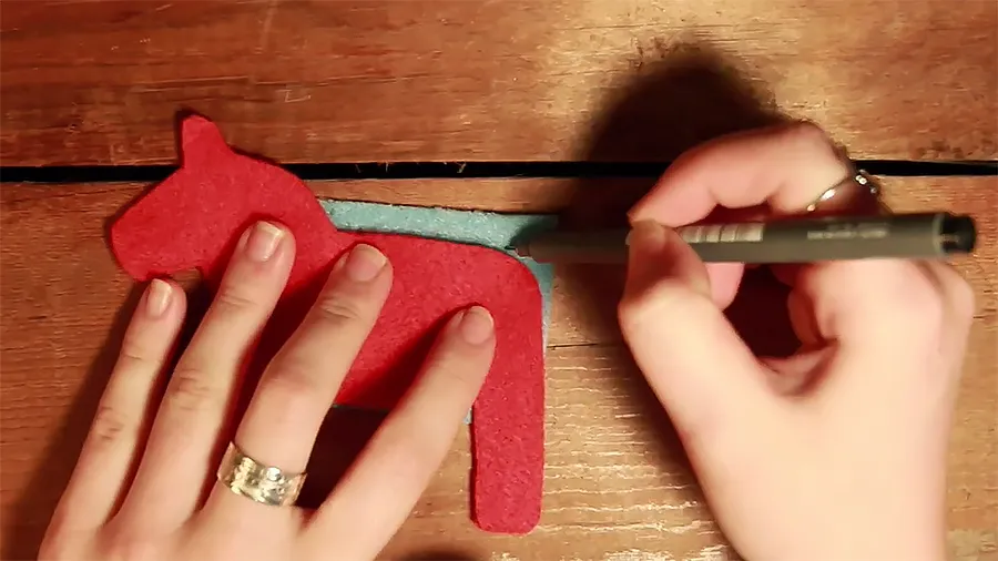 Приложите туловище к фетру другого цвета и обведите контур спины лошадки.