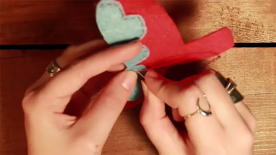 Сшивайте по контуру руками или на швейной машинке. Оставьте небольшое отверстие сверху или снизу.