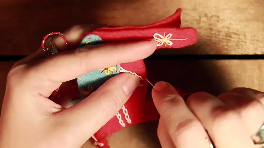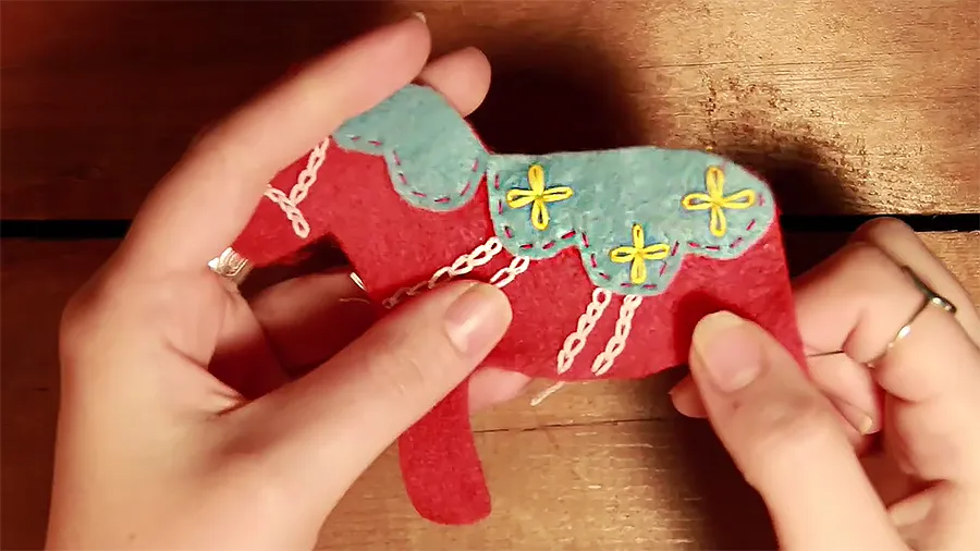 По желанию вышейте сбрую и добавьте простые узоры: стежки, «капельки» или маленькие снежинки.